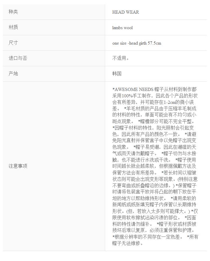 AWESOME NEEDS LAMBS WOOL HALF ROUND BUCKET HAT 帽子 BLACKJPY带授权招加盟代理