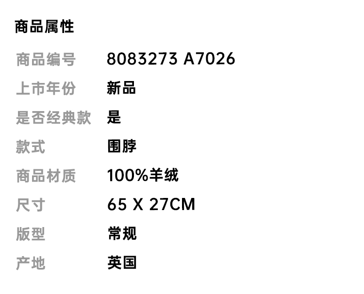 BURBERRY 巴宝莉 男女通用格纹羊绒围脖 混色 8083273 A7026