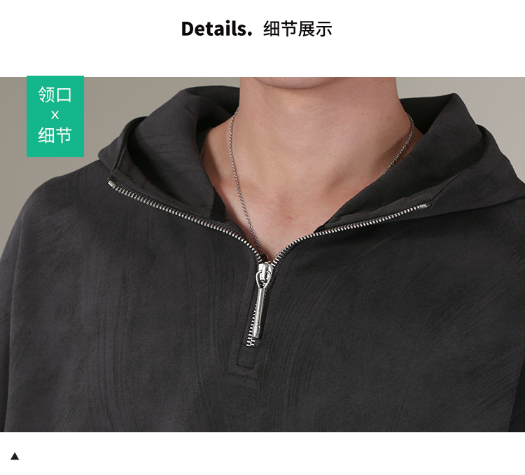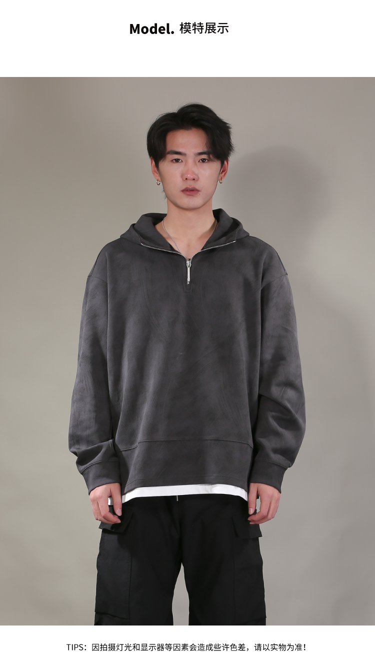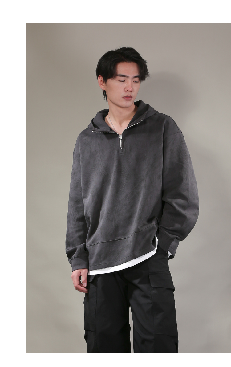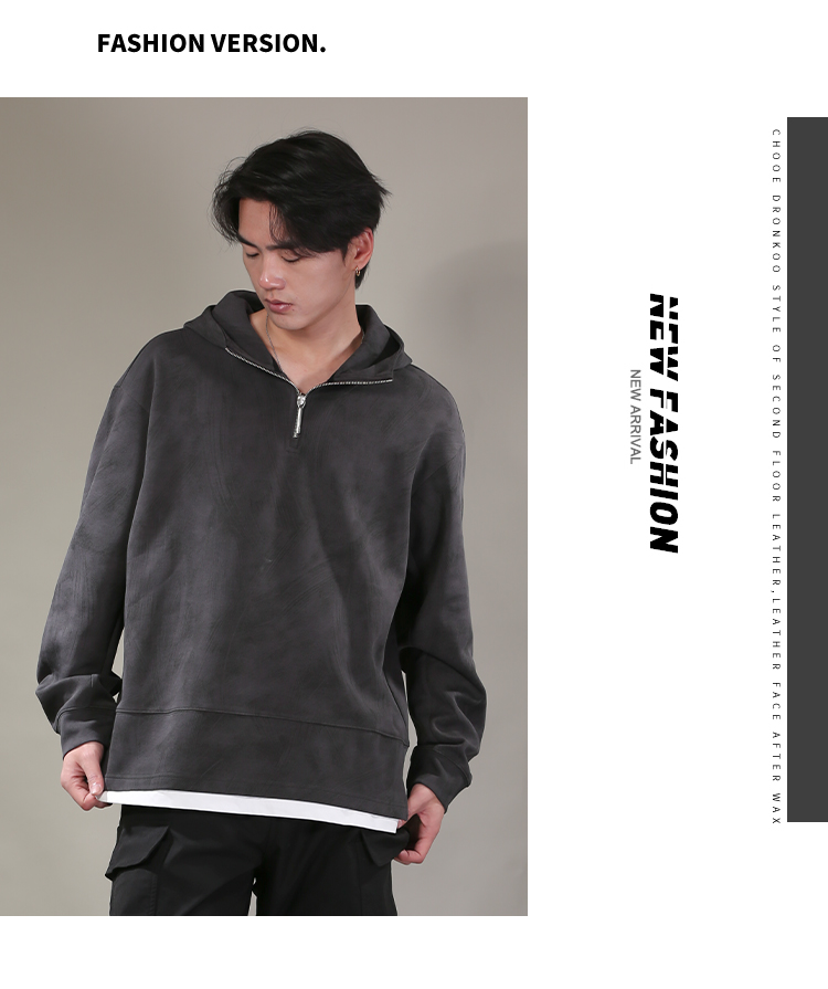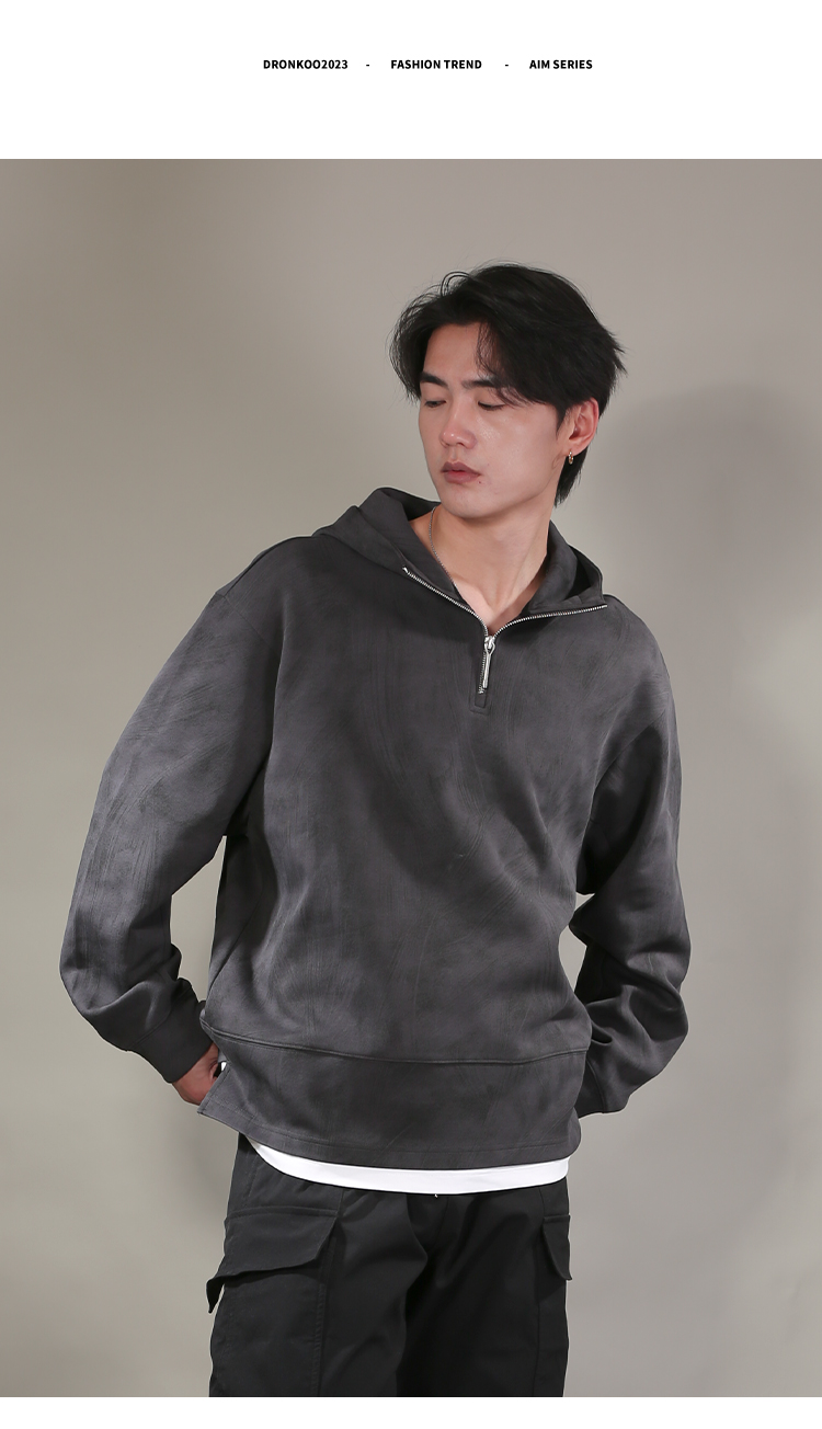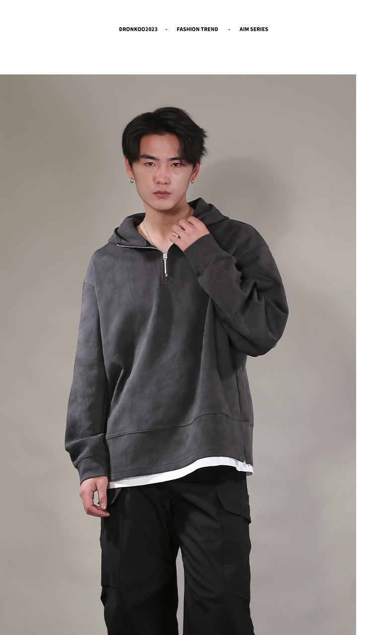 DRONKOO 2026 连帽半拉链下摆拼T恤笔触印花微阔中厚卫衣