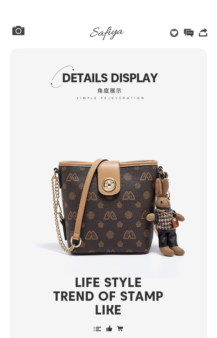 Safiya/索菲娅【送小熊】腋下手机单肩水桶大容量百搭女士斜挎包包2022新款 SF9140023Y