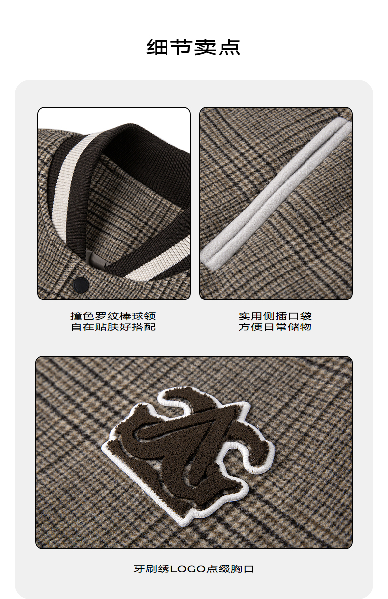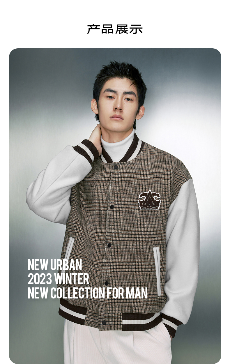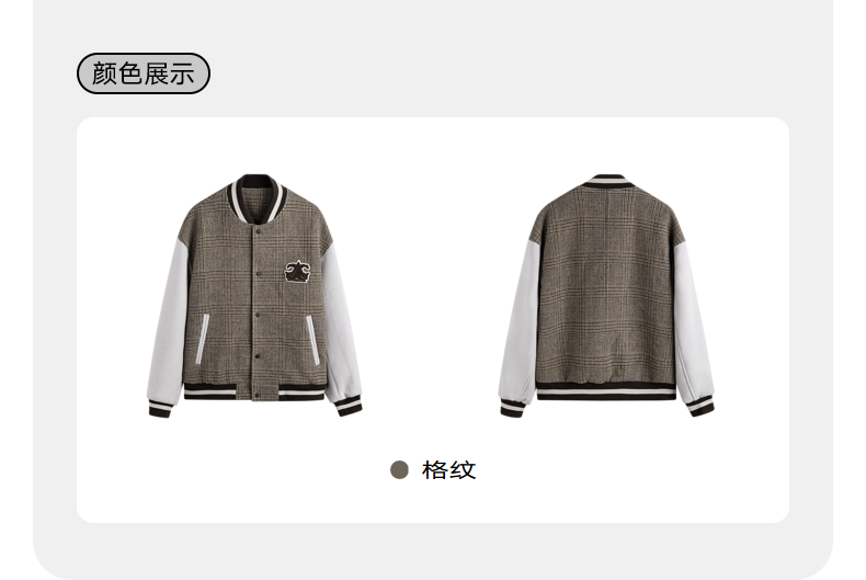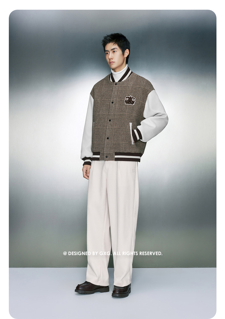 GXG男装 拼色双面呢格纹保暖棒球服夹克外套 冬季热卖夹克