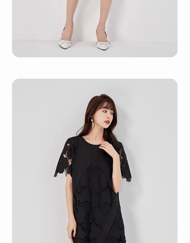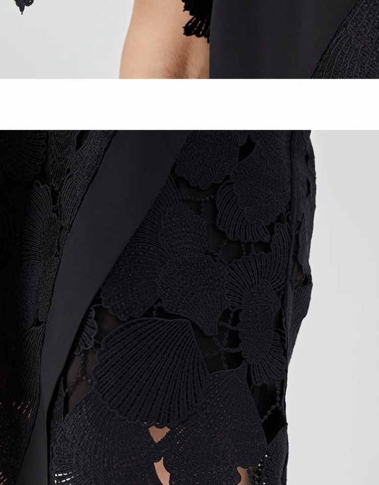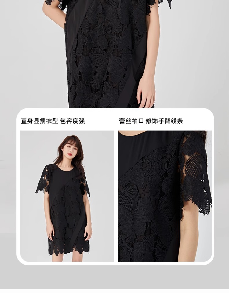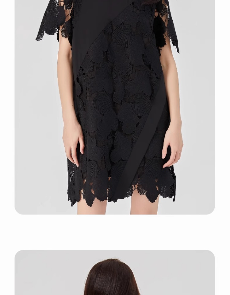 oldcolour2023夏新款黑色设计感小众蕾丝薄款短款连衣裙O22101260