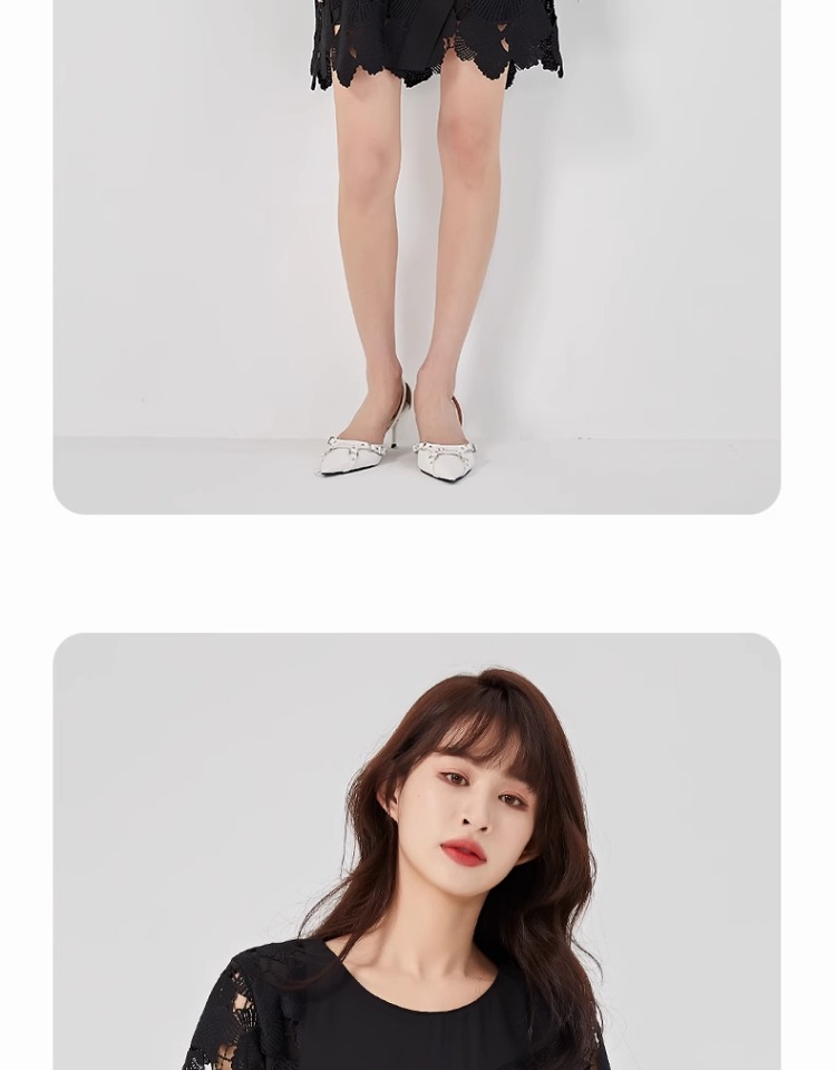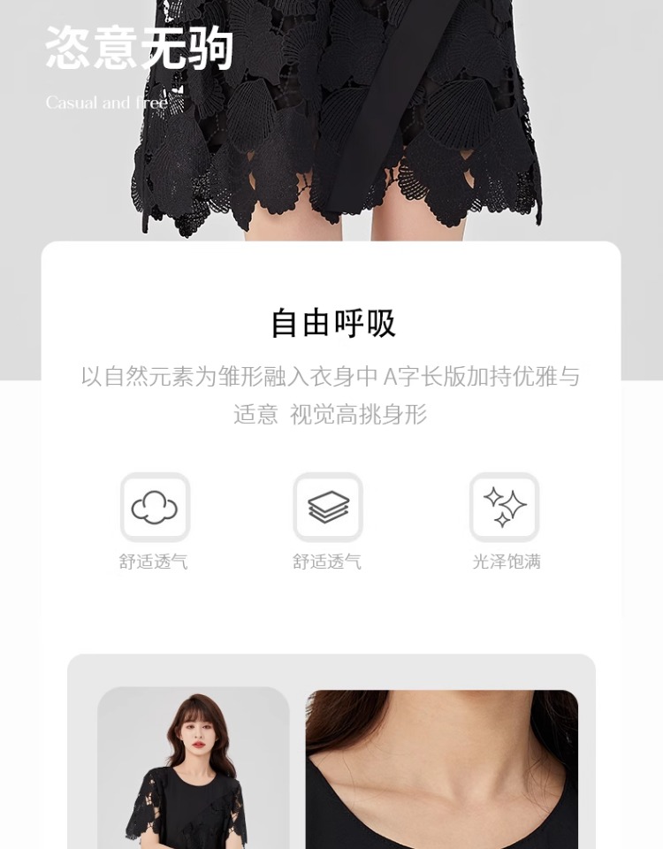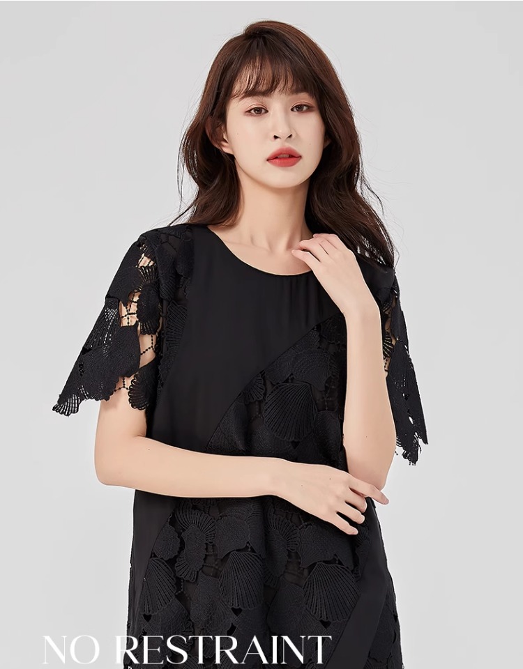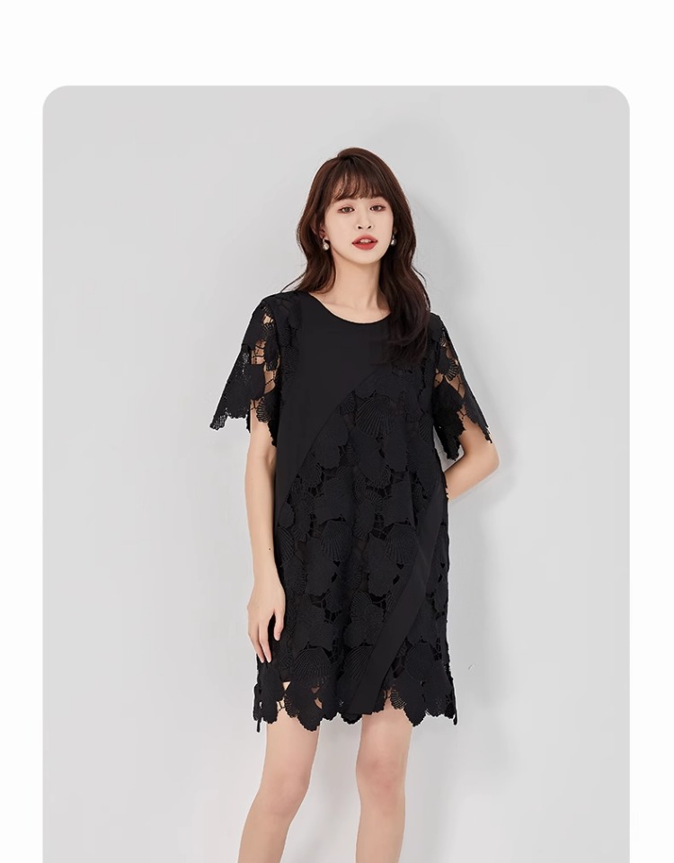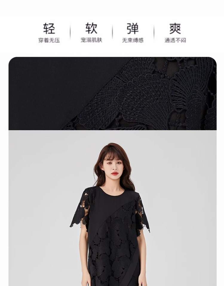 oldcolour2023夏新款黑色设计感小众蕾丝薄款短款连衣裙O22101260