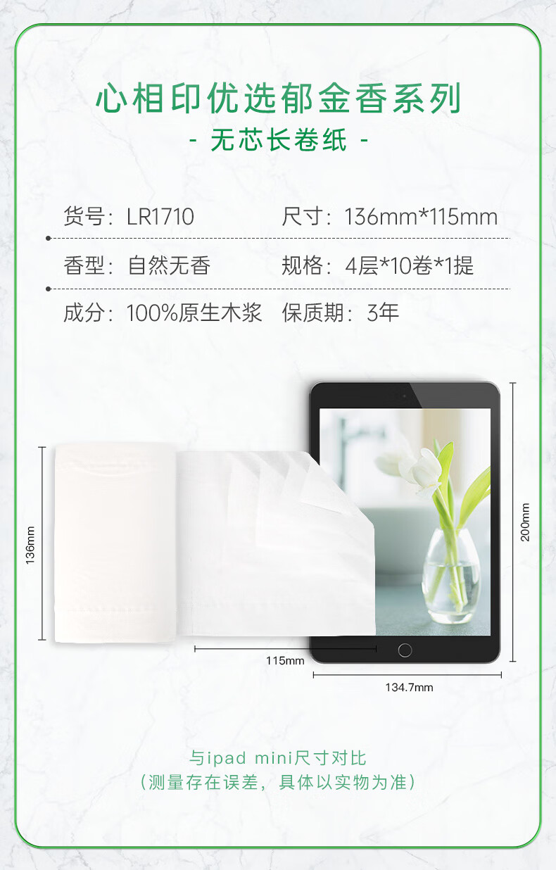 6LR1710(提装)优选郁金香系列70克10粒装四层无芯卫生纸*6提