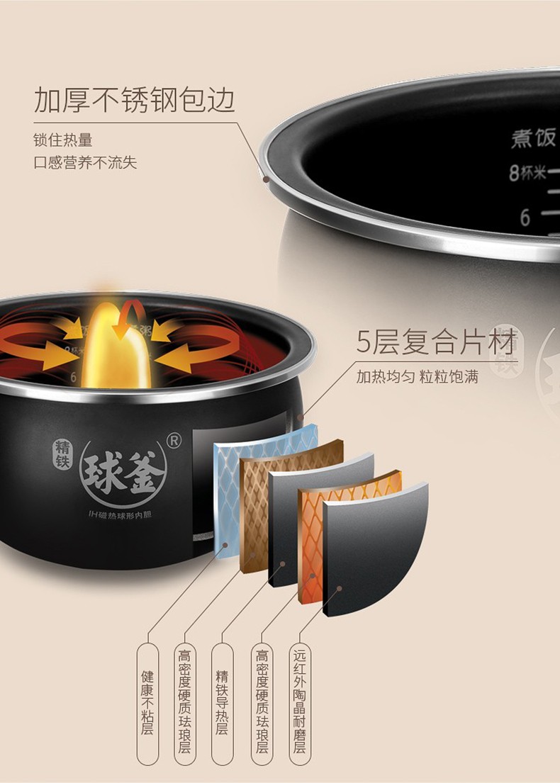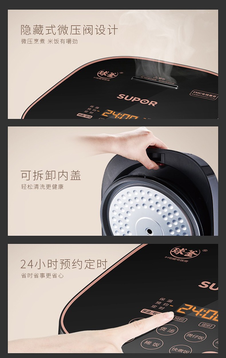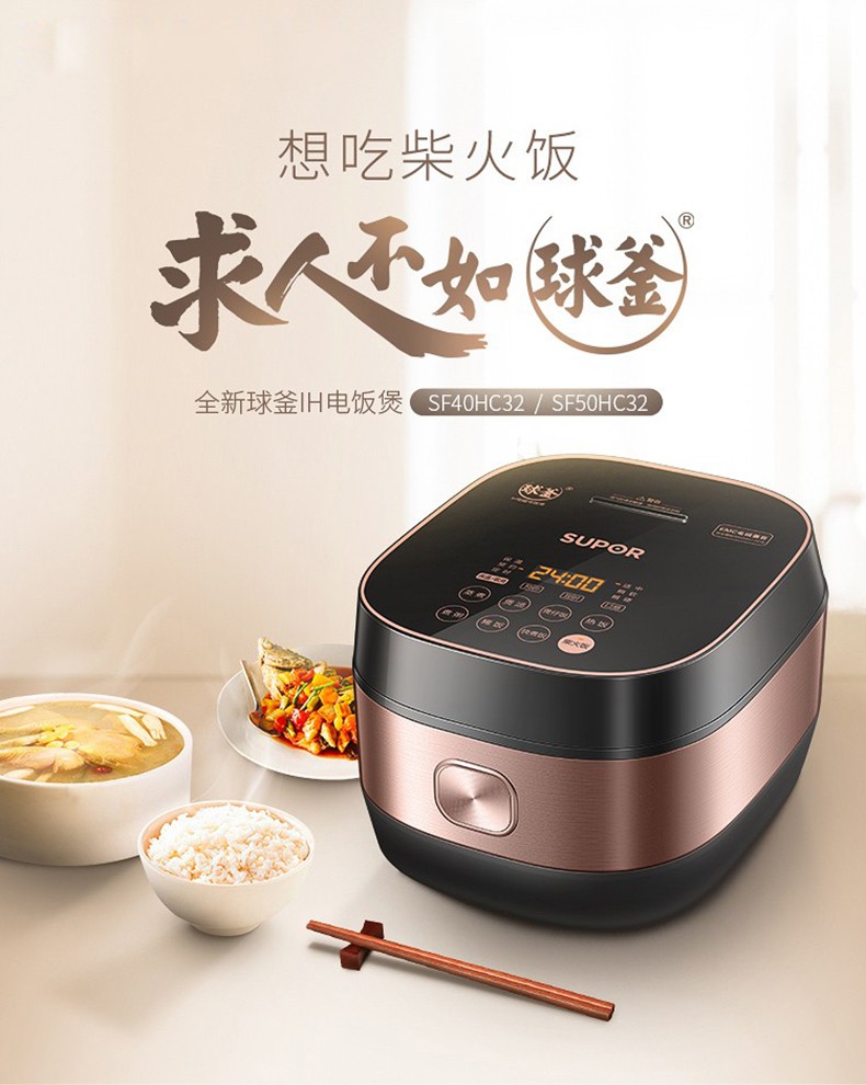 苏泊尔(SUPOR)电饭煲 智能预约煮粥锅 IH电磁加热 球釜内胆电饭锅4-6人 SF40HC32(线下同款)