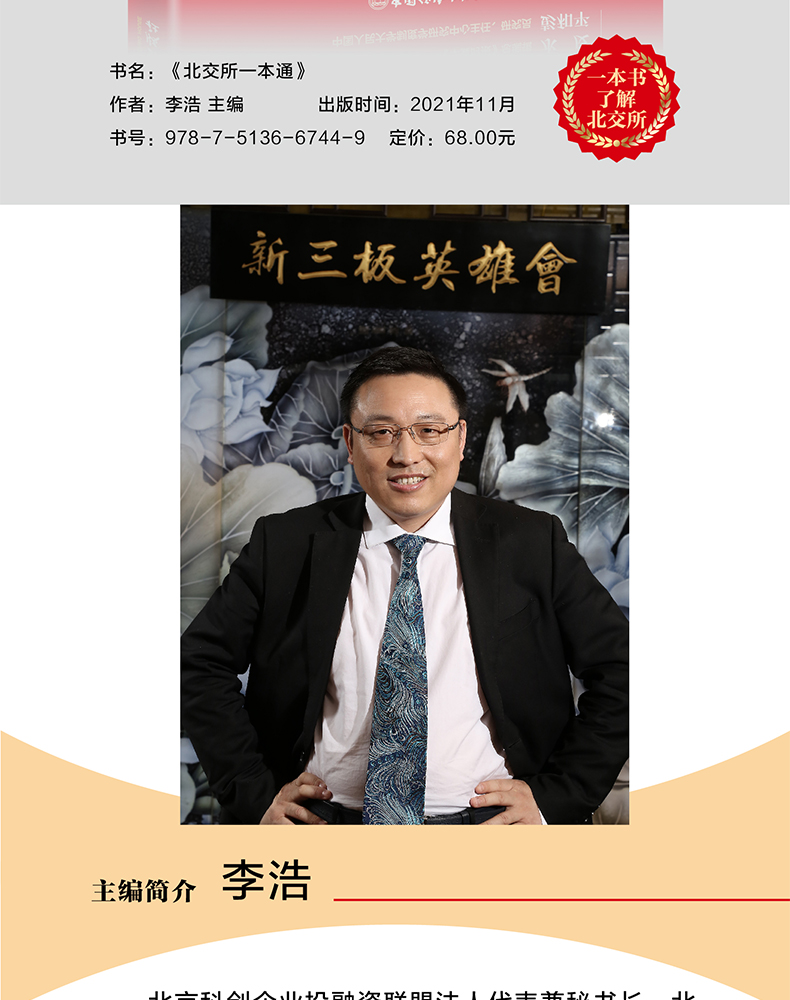 李浩:北京科创企业投融资联盟法人代表兼秘书长、北方工业股权交易中心法人代表副董事长兼总经理、中国科学院技术中心金融委副主任、三板汇投顾集团董事长,曾任《中国企业报中国新三板导刊》主编、《浩说新三板》系列丛书主编、新三板文化节核心发起人、新三板华山论剑投融资千人峰会组织者,曾专职执教于高校,是国家*、商务部、北京大学、清华大学等政府机构及高校特聘讲师,部分地方城市的金融顾问,有着近20年的证券相关从业经历,是国内新三板领域的知名人士。