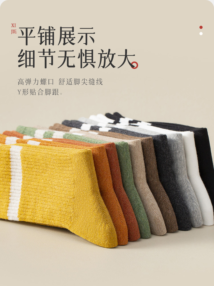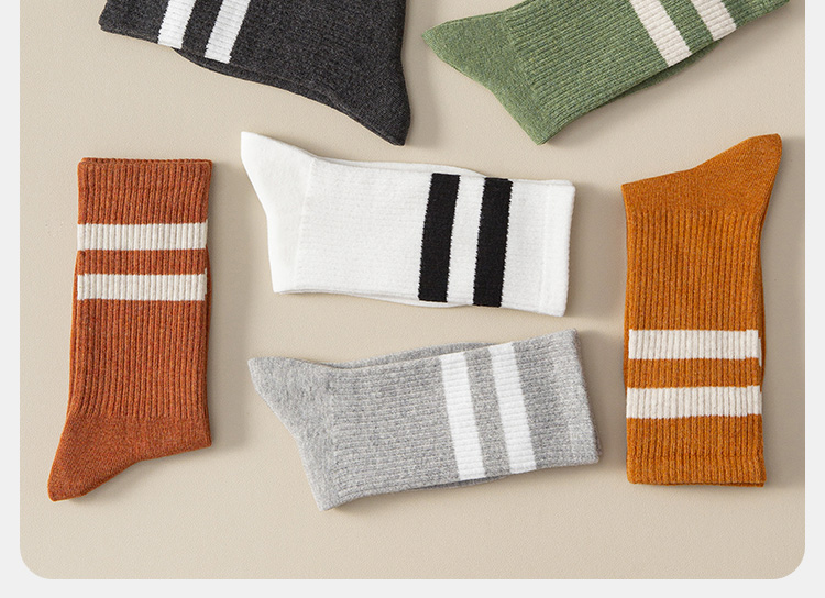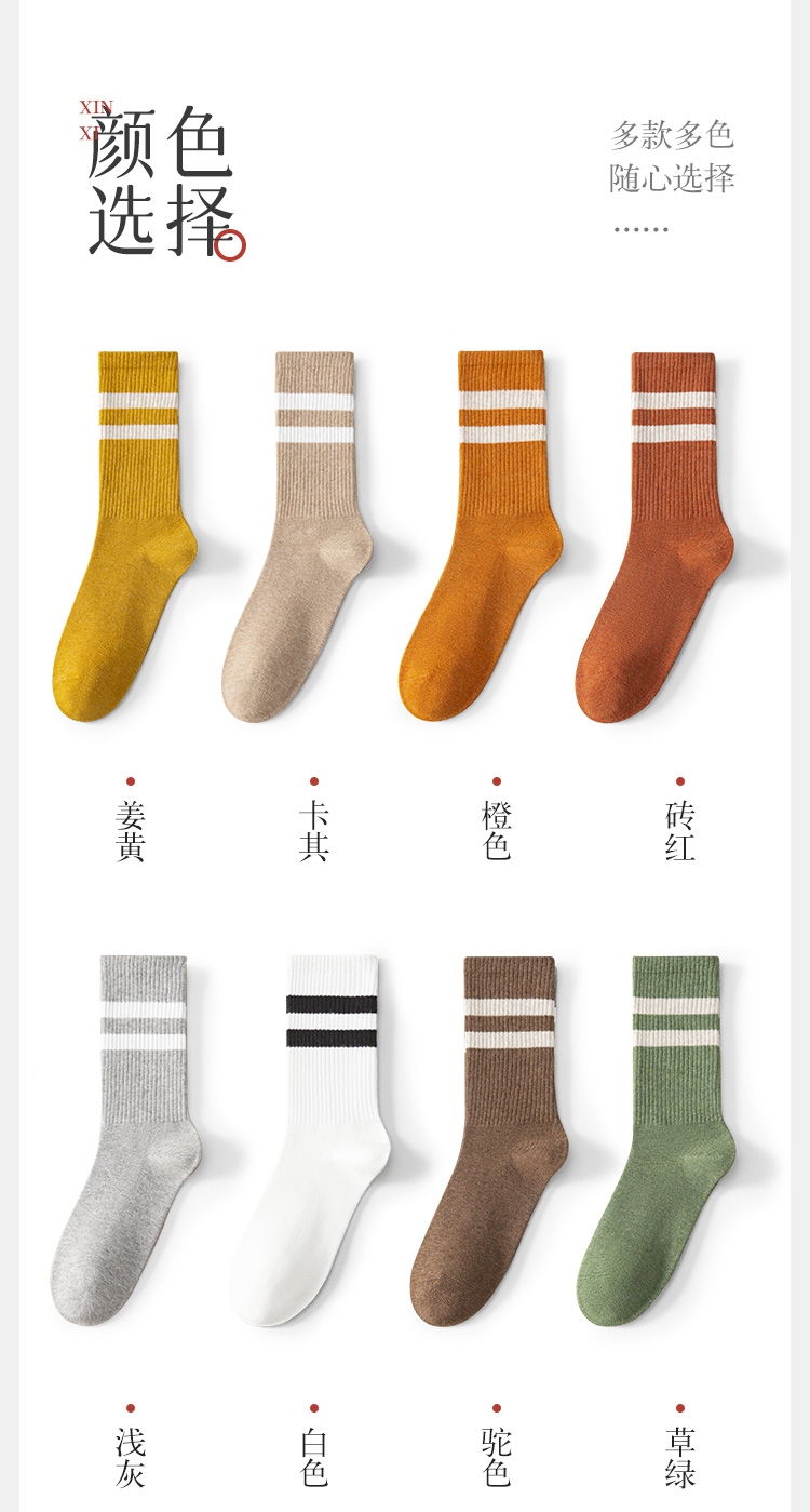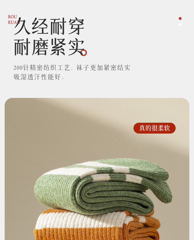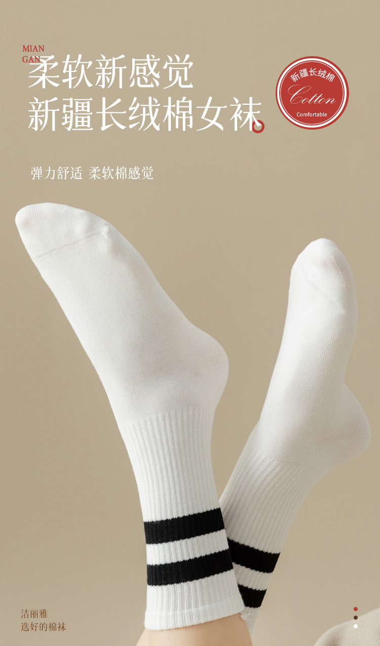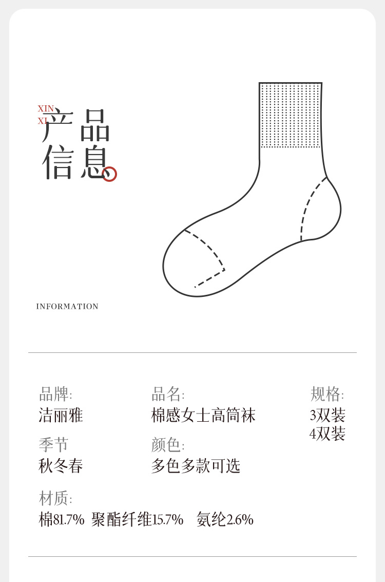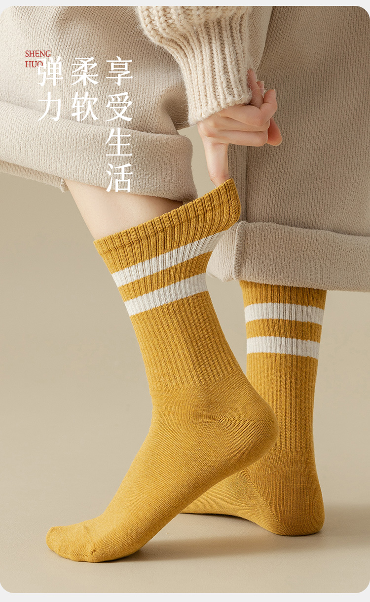 洁丽雅内衣3/4双套秋上新学院风双杠条纹高筒堆堆袜棉质女袜子