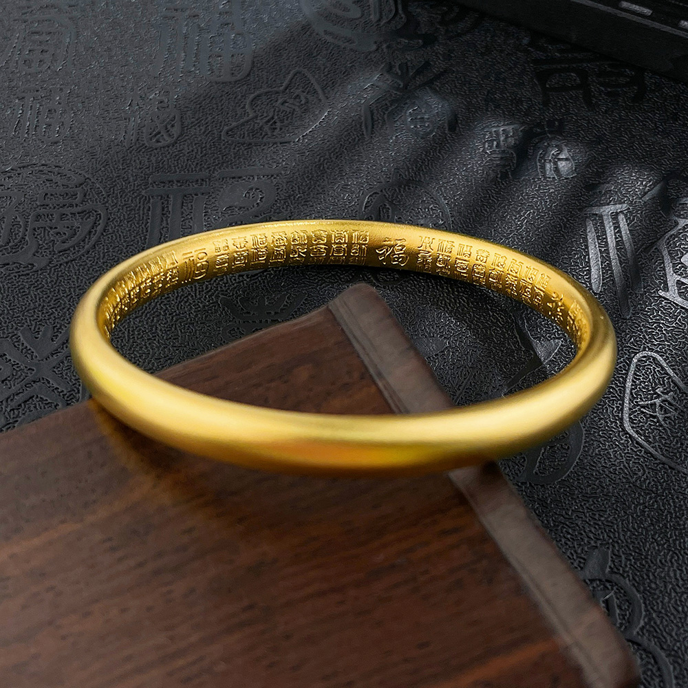 【限时克减150元】足金999.9 #复古风 古法空心固口福运绵长内百福泥鳅背手镯(面宽约6.4-6.8mm,厚约4.5mm)(GFSZW00169-01)(预售产品下单后不退款不退货不换货不补差价)