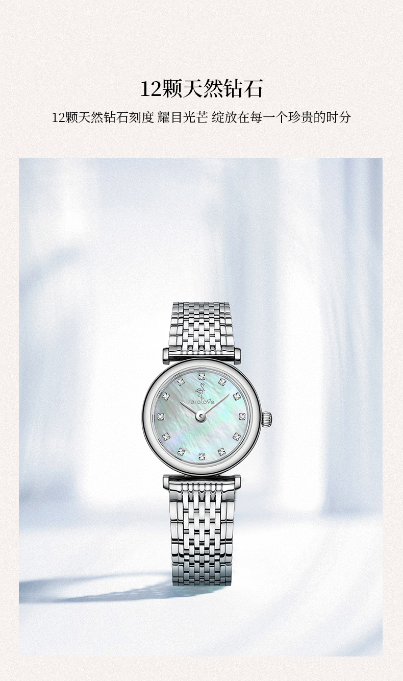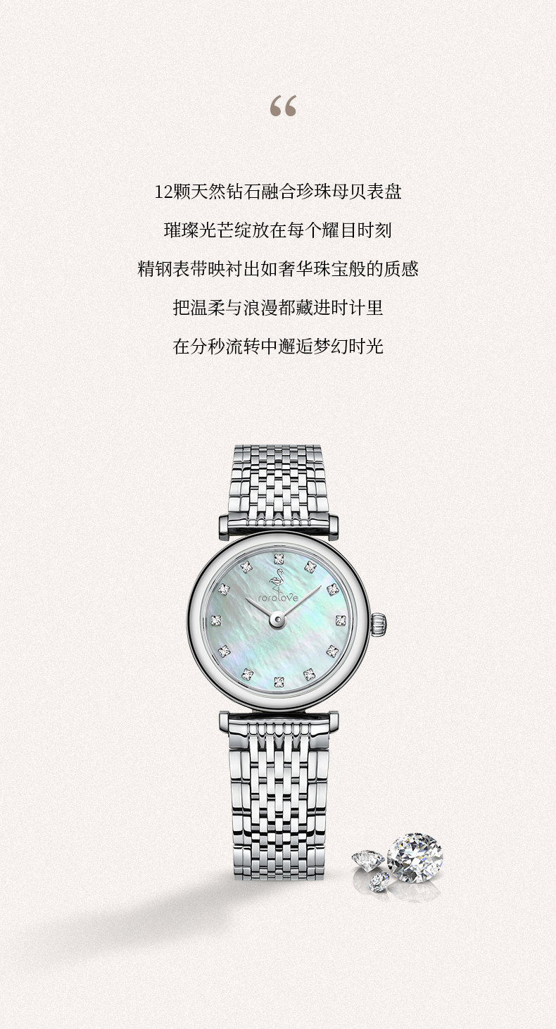 【ROROLOVE】邂逅Enchanted系列 天然钻石腕表 精钢钻石手表进口机芯潮流个性女表(12颗钻石)