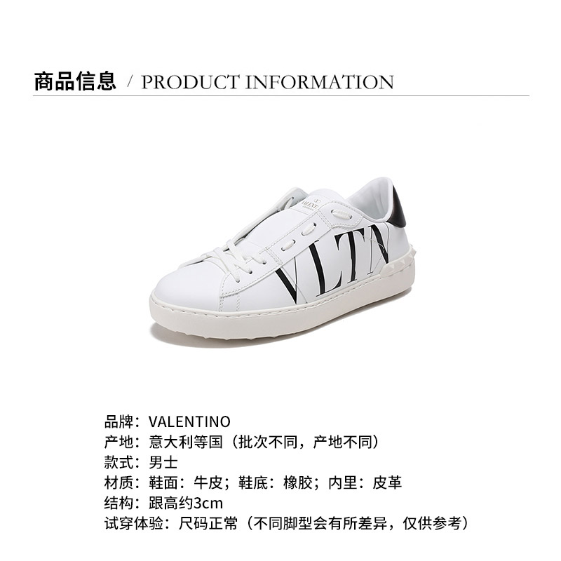 Valentino/华伦天奴【22春夏新款】男士牛皮Open铆钉系带休闲运动鞋板鞋小白鞋VLTN图案 XY2S0830 PST