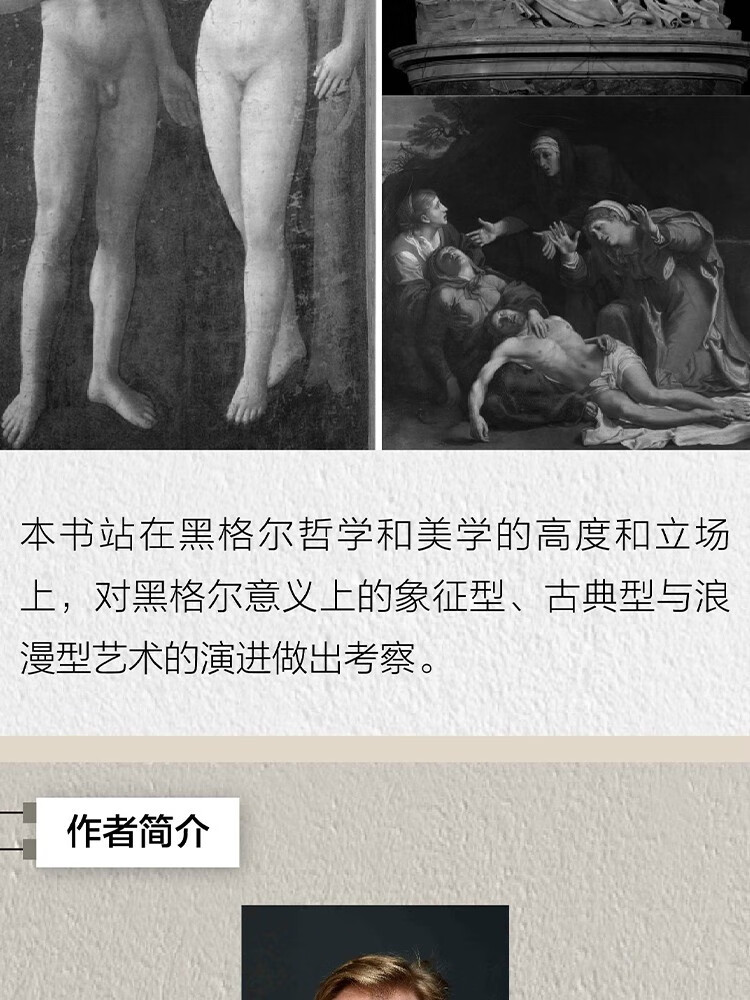 考特曼是当代西方著名悲剧理论家、批判理论的后起之秀。他认为,“我们需要……对我们的认知、信仰和习俗进行辩护或理性批判……这种能力就是我所说的黑格尔意义上的思辨能力”。他称,黑格尔“创建了独一无二的现代人文学科研究规划”。本书正是站在黑格尔哲学和美学的高度和立场上,对黑格尔意义上的象征型、古典型与浪漫型艺术的演进做出考察,使我们与古埃及金字塔、古希腊雕塑、基督教绘画与莎士比亚戏剧等不同历史环节的艺术形式依次重逢。