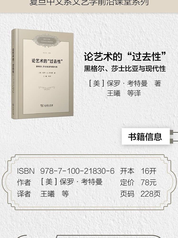 论艺术的“过去性”:黑格尔、莎士比亚与现代性(复旦中文系文艺学前沿课堂系列) [美]保罗•A.考特曼 著 王曦 等译 商务印书馆