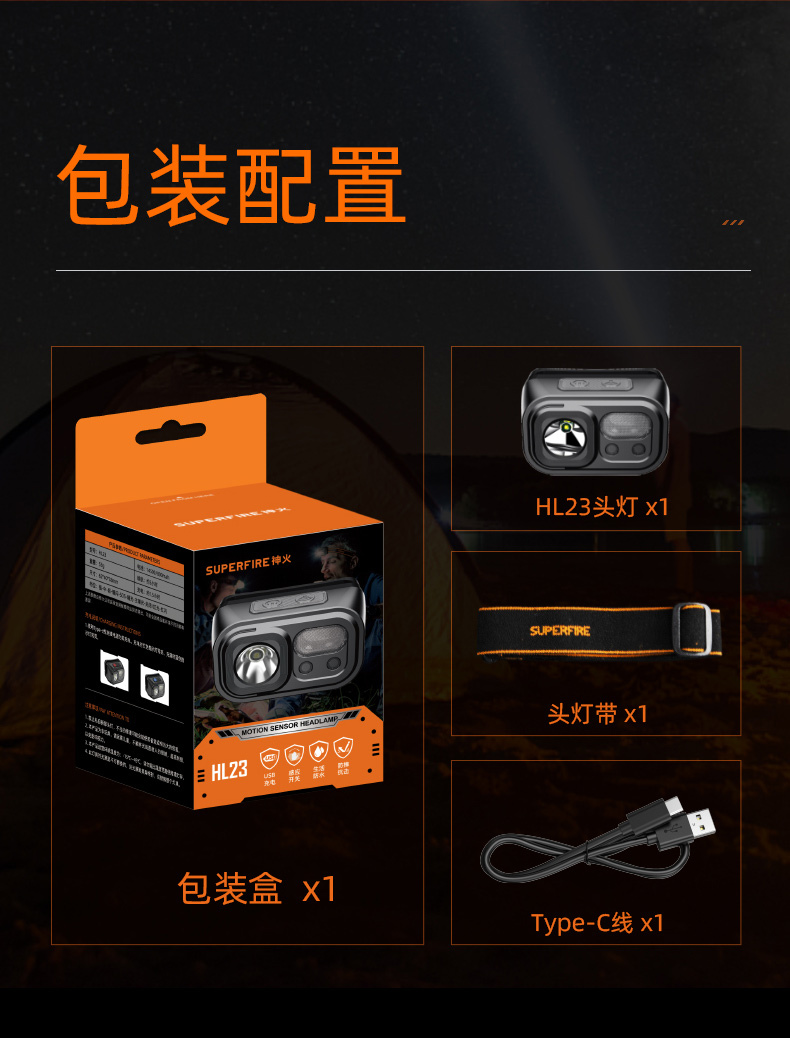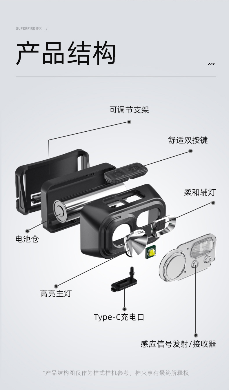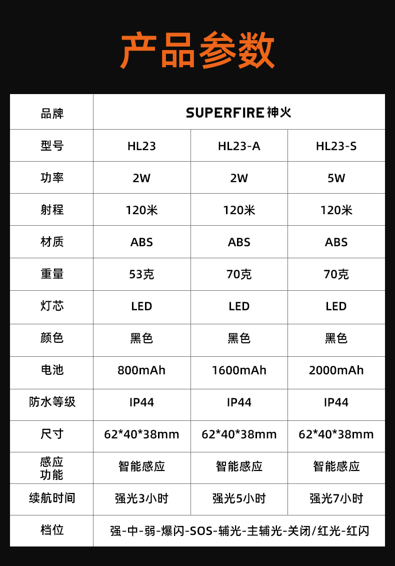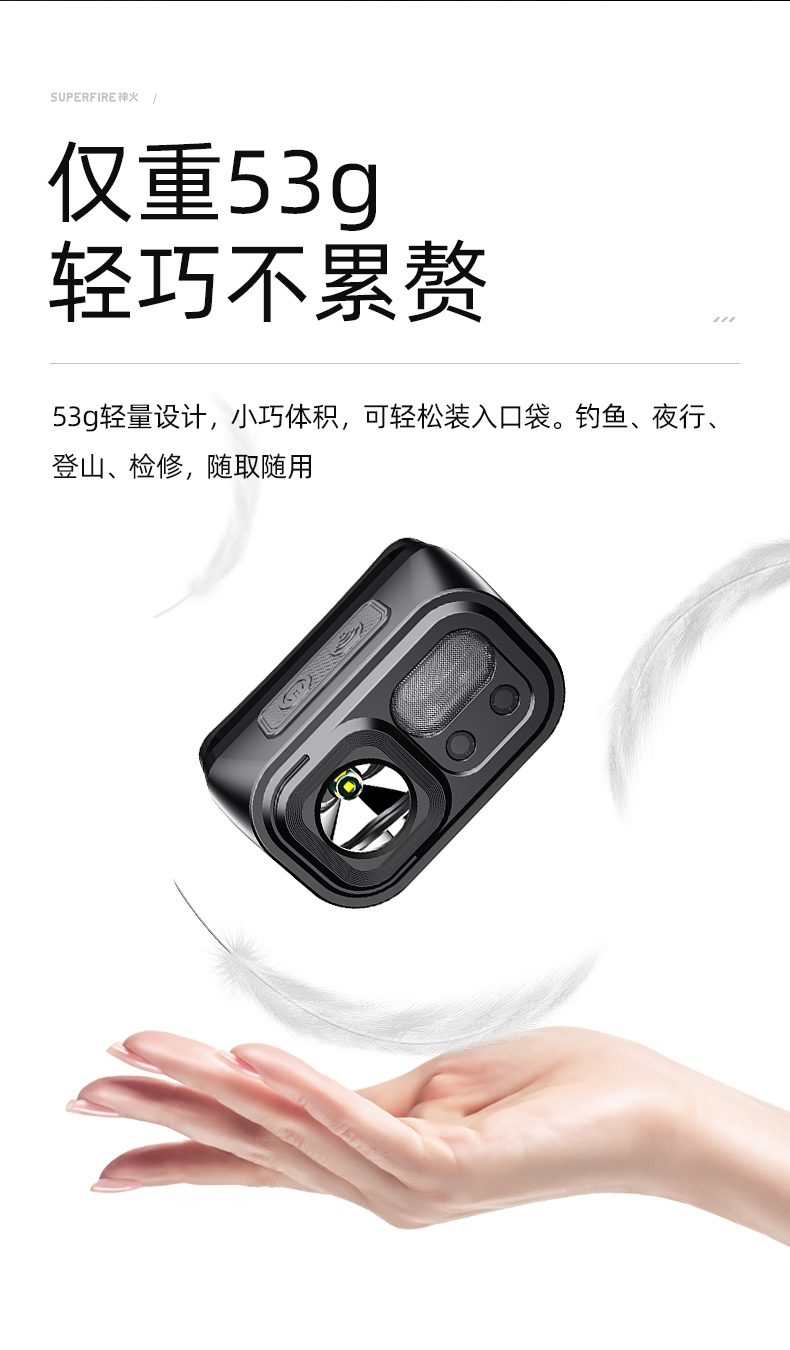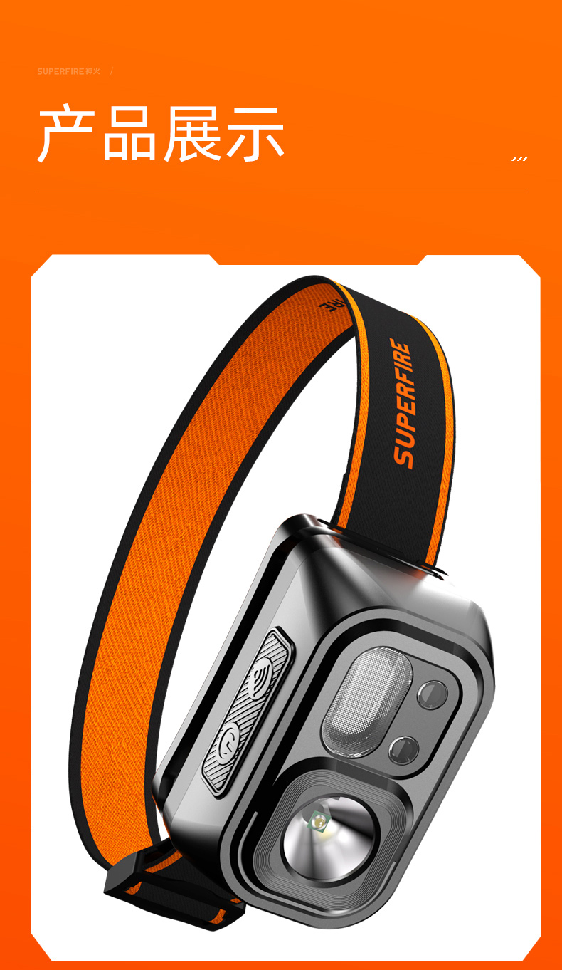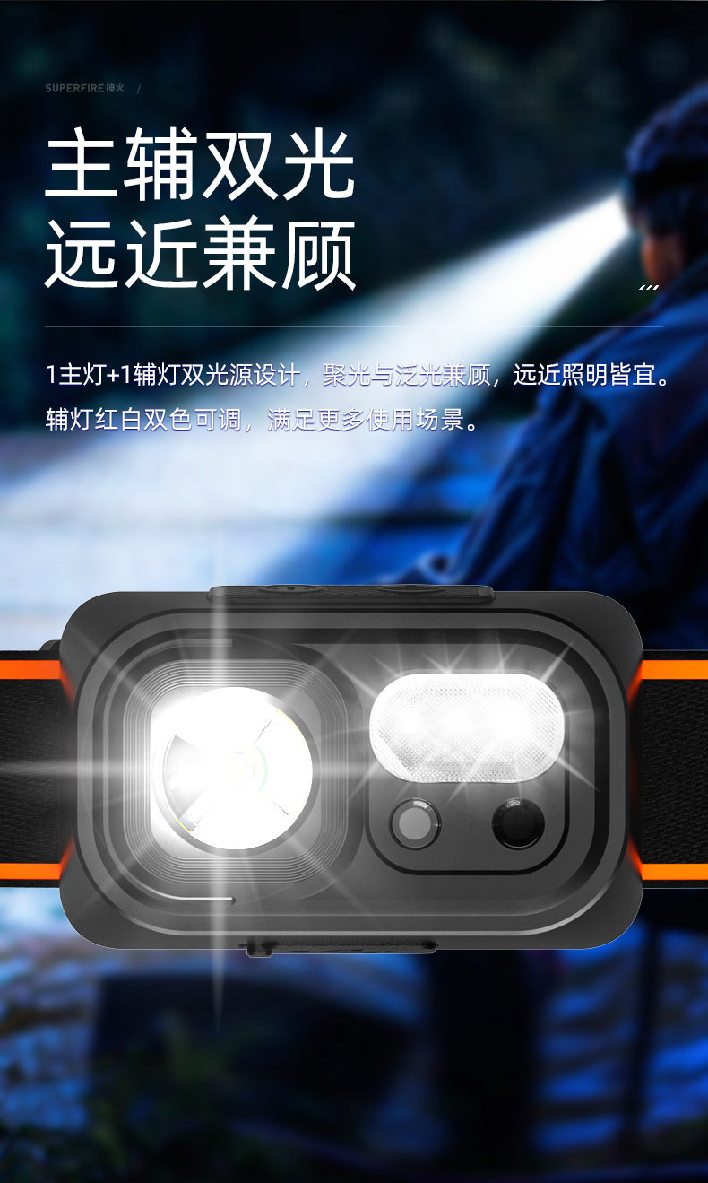 SUPERFIRE神火新品HL23头灯感应强光夜钓野钓充电超亮户外头戴式钓鱼灯