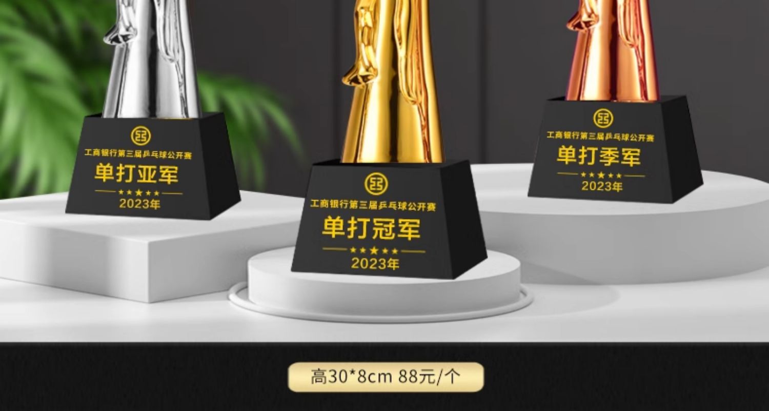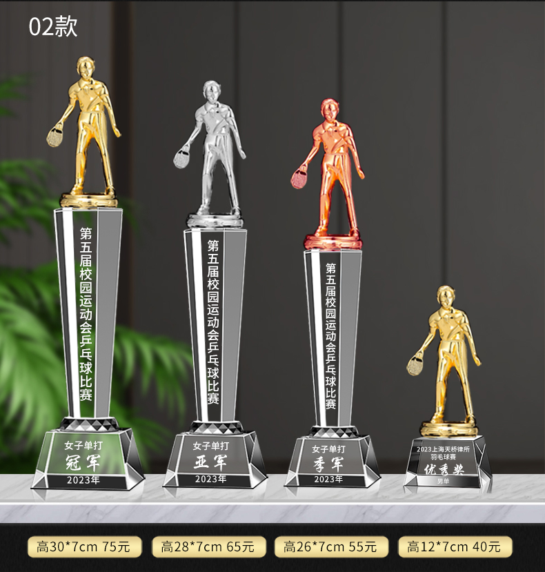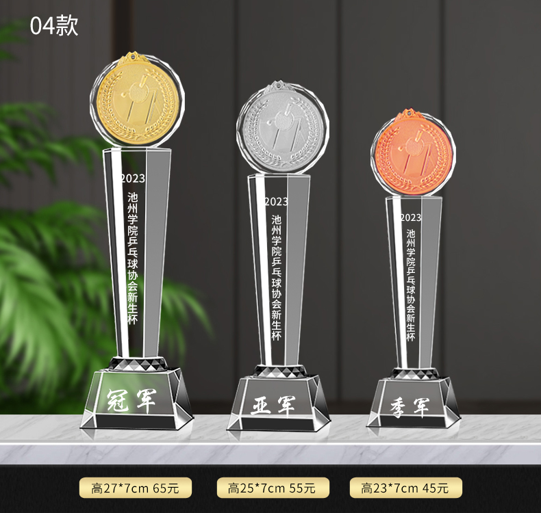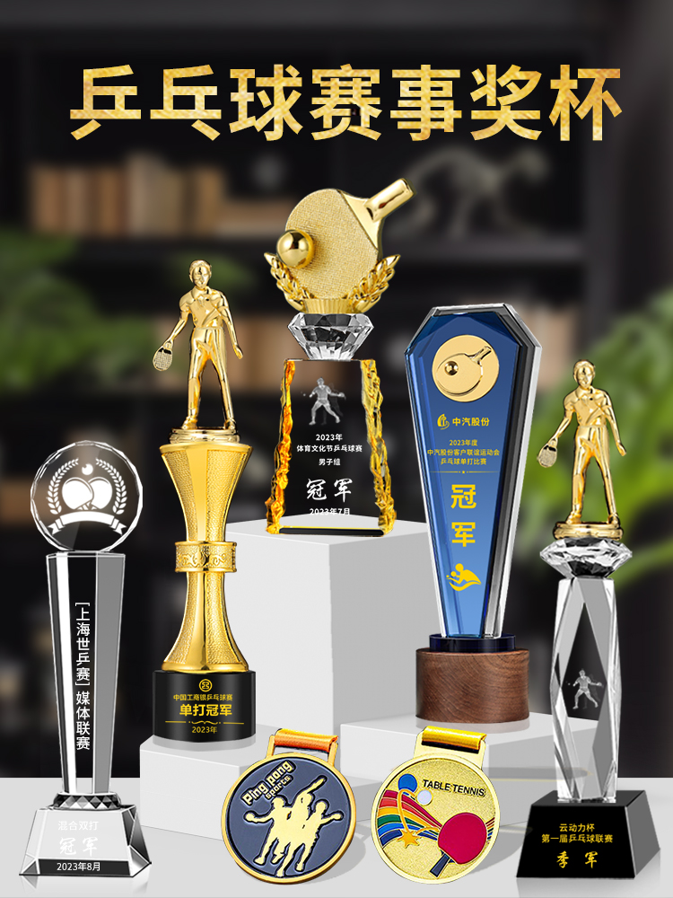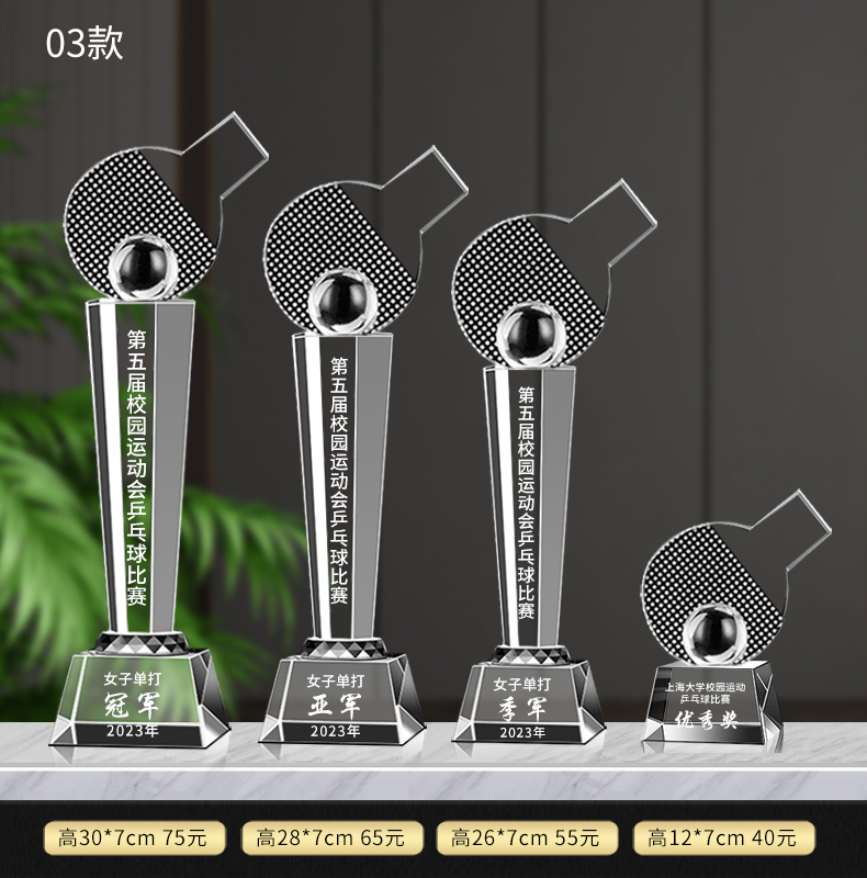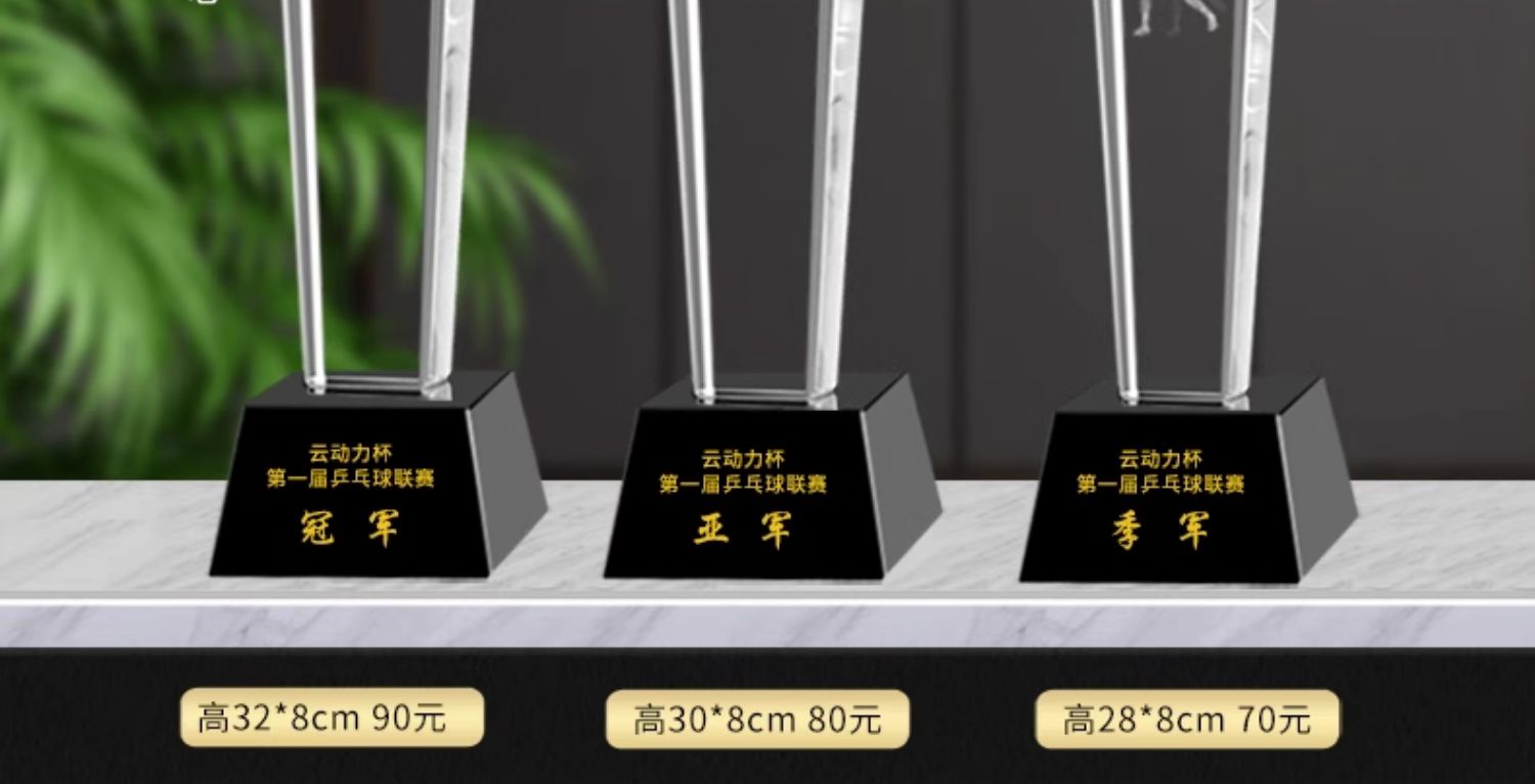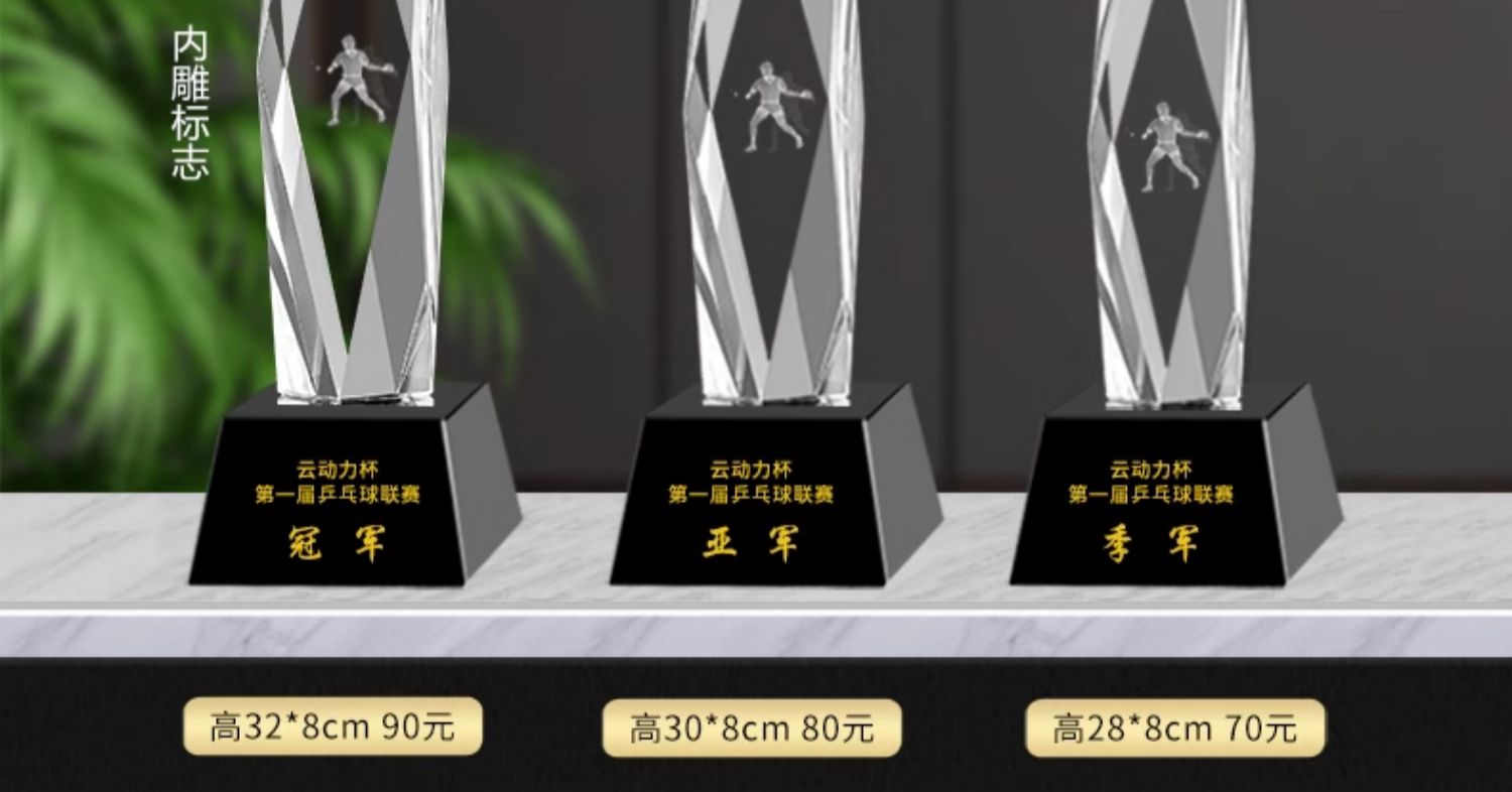 乒乓球水晶奖杯定制定做单打冠军双打团体赛校园体育运动会比赛