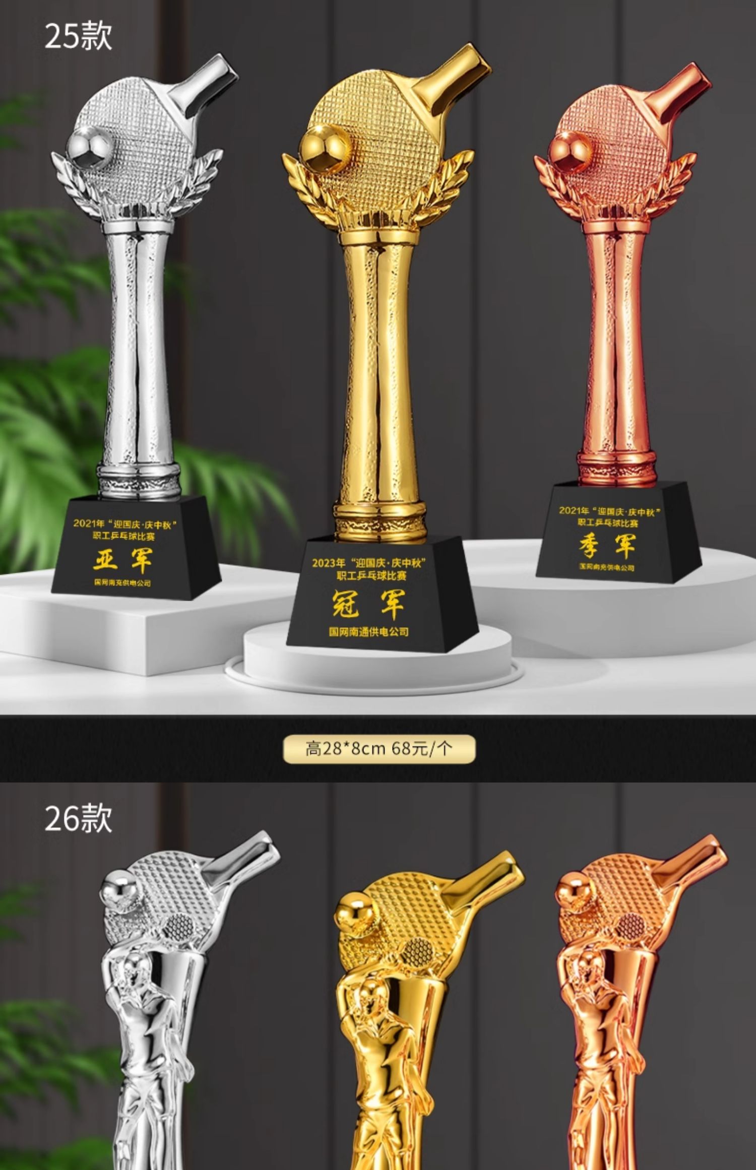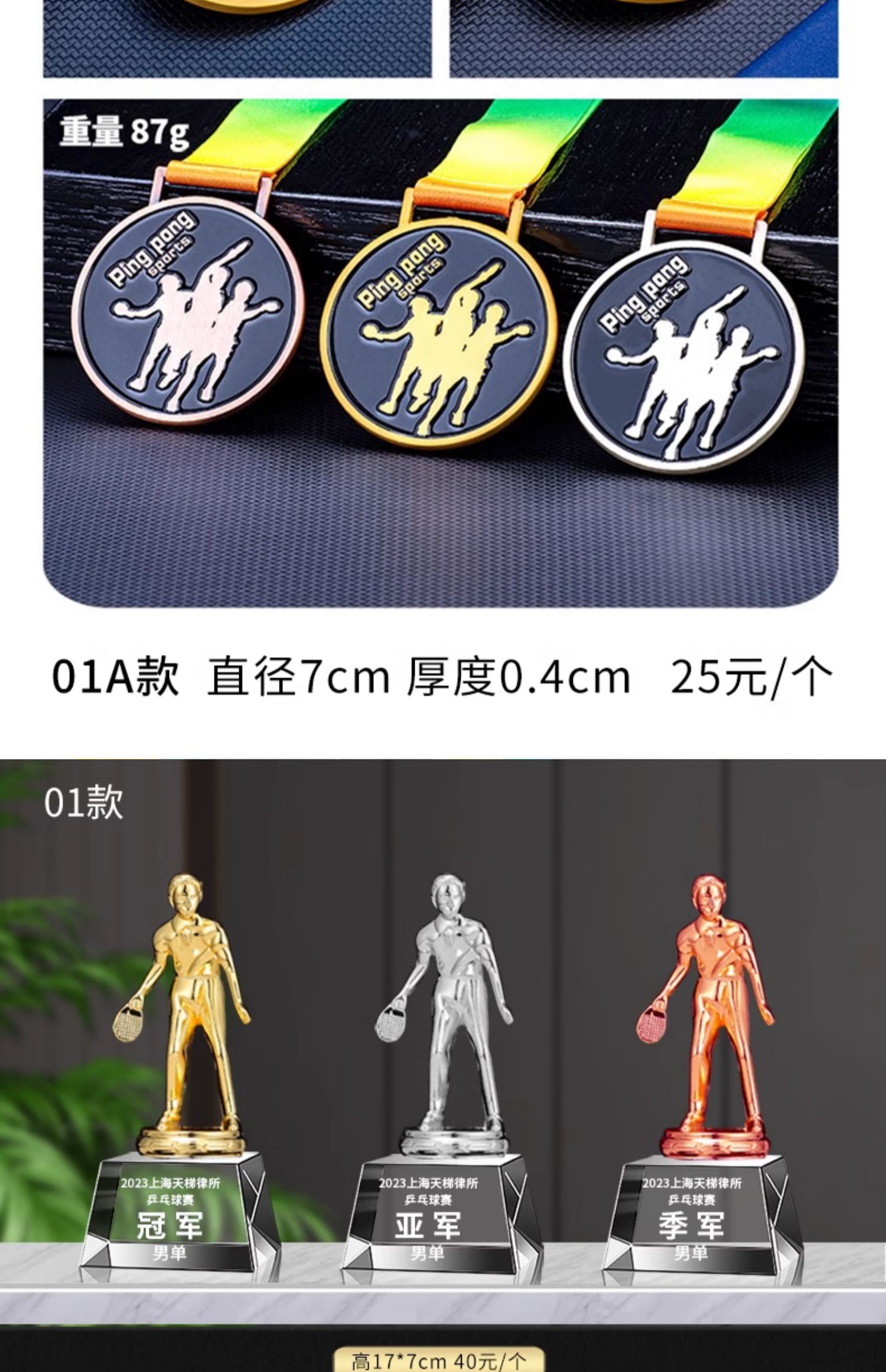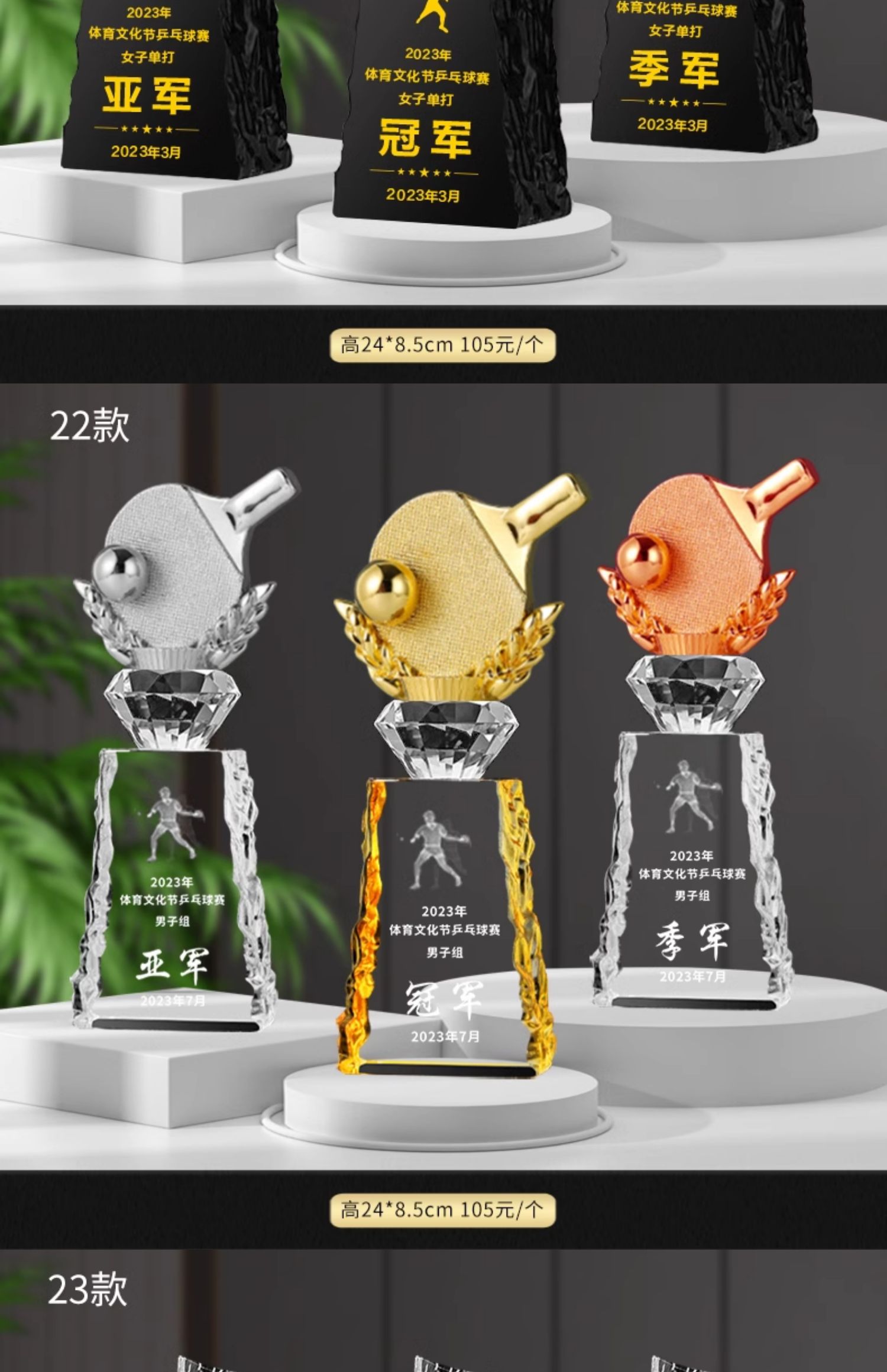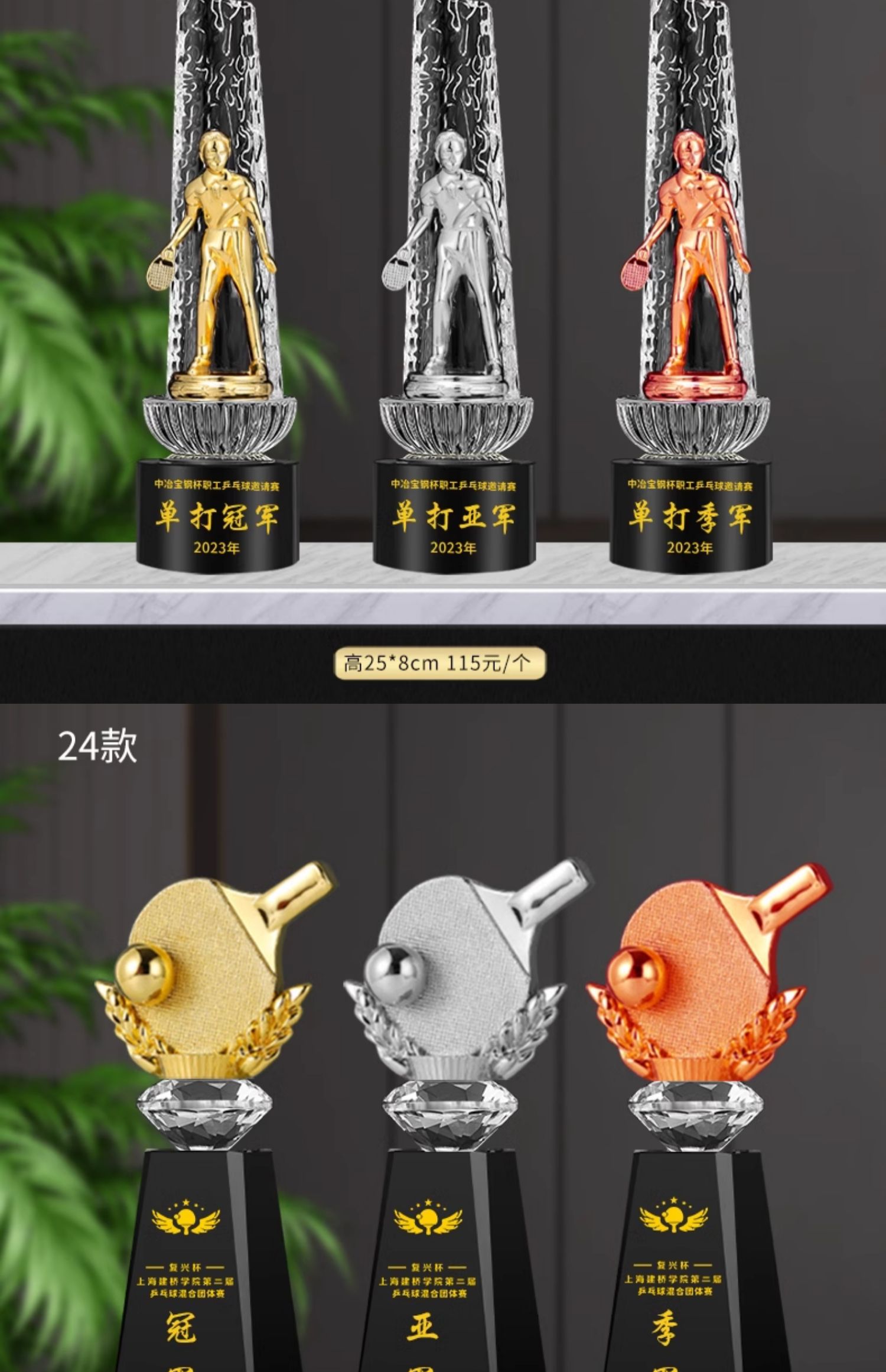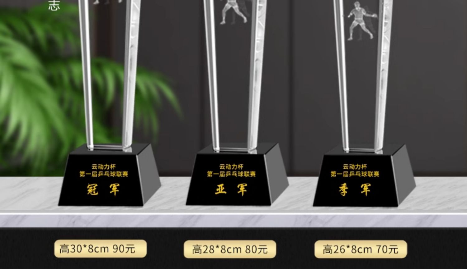 乒乓球水晶奖杯定制定做单打冠军双打团体赛校园体育运动会比赛