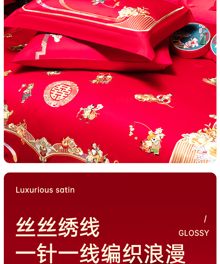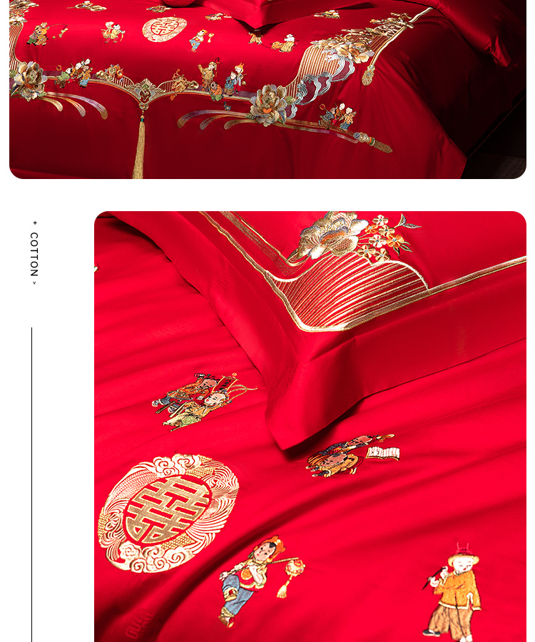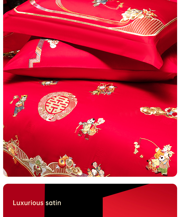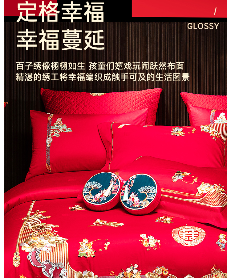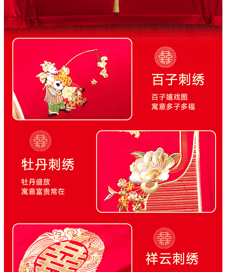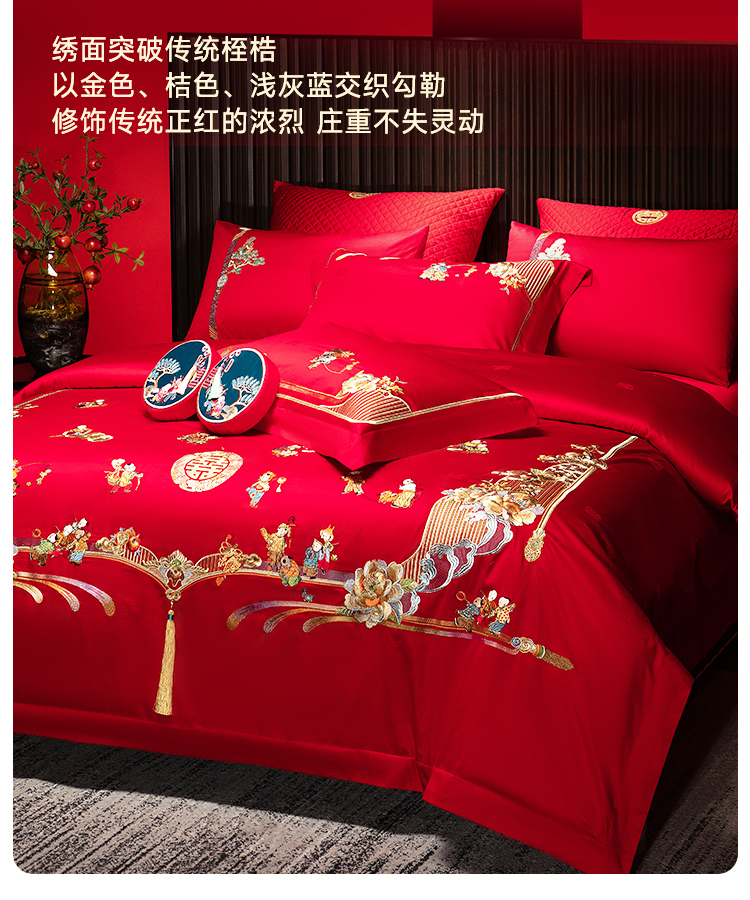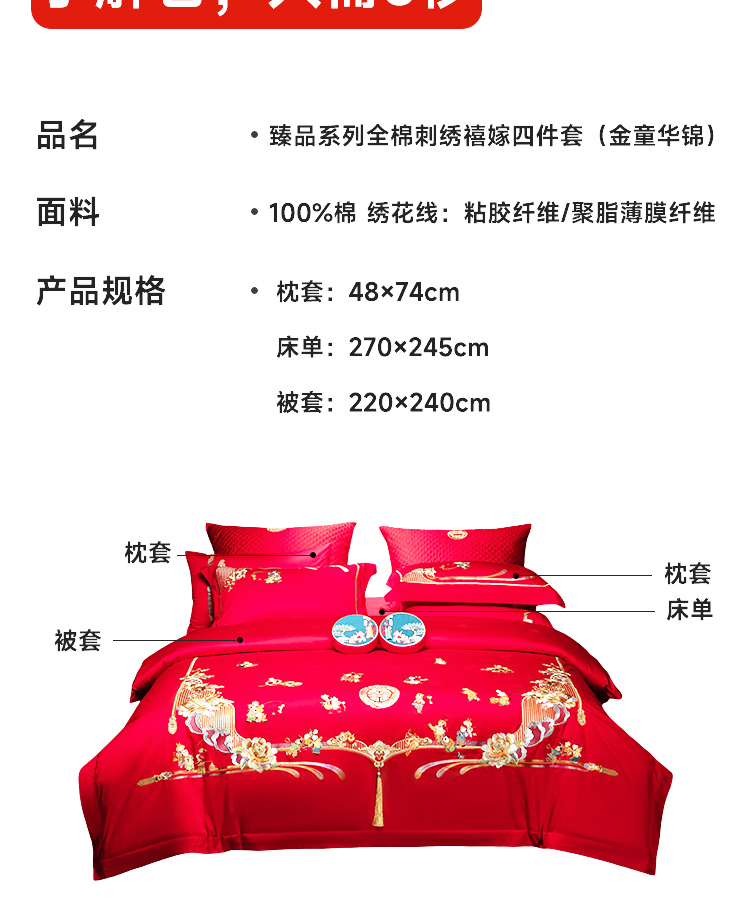 臻品系列全棉刺绣禧嫁四件套(金童华锦)