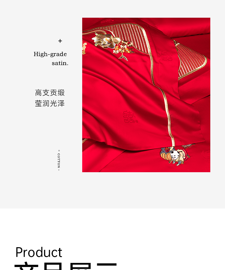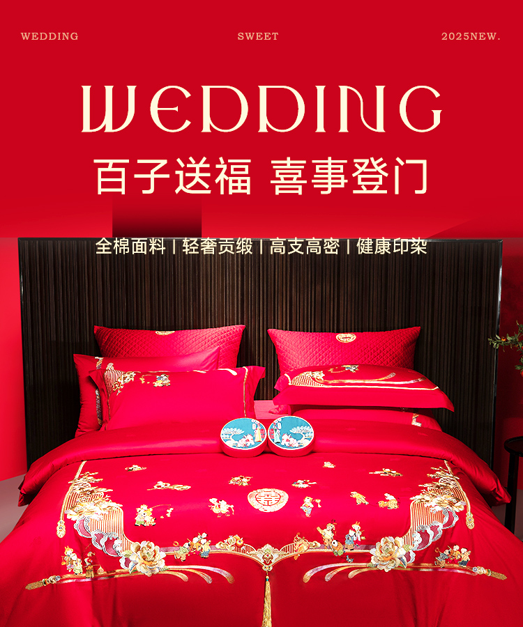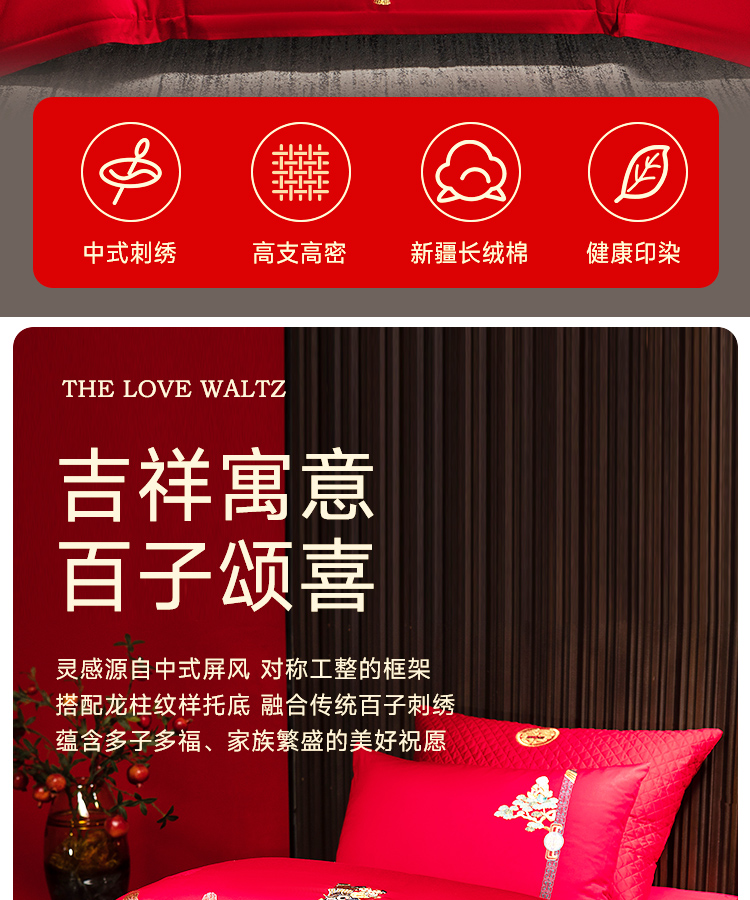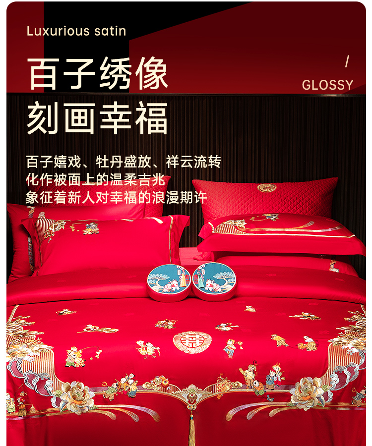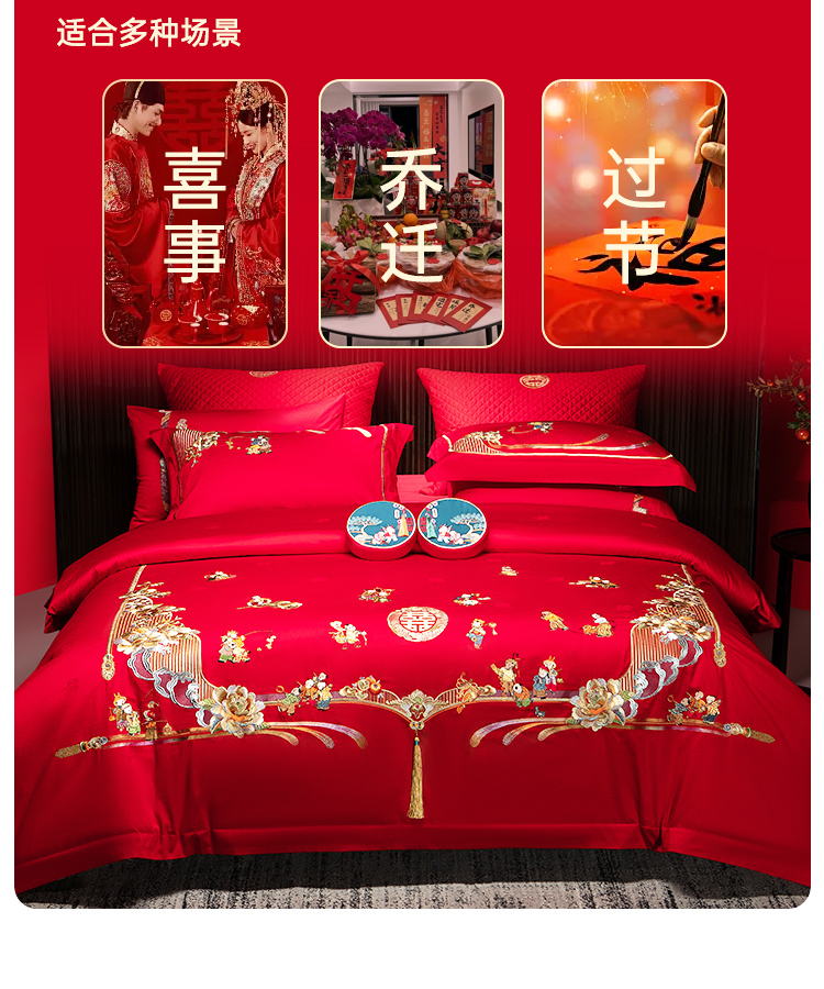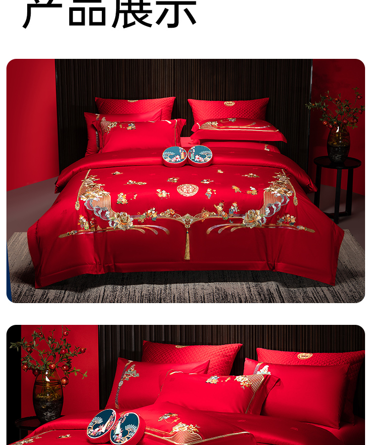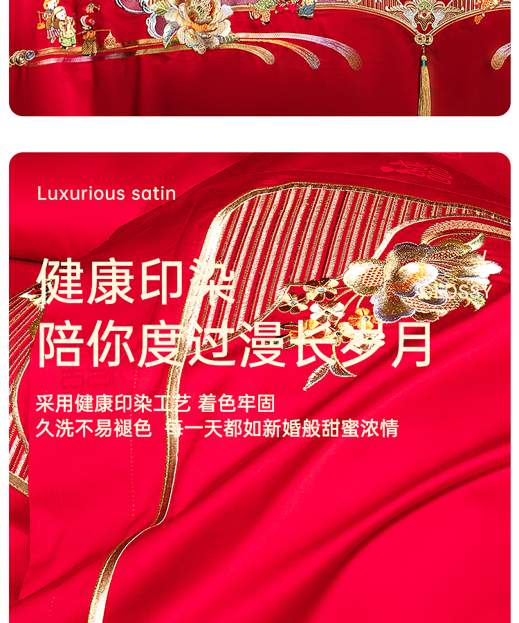 臻品系列全棉刺绣禧嫁四件套(金童华锦)