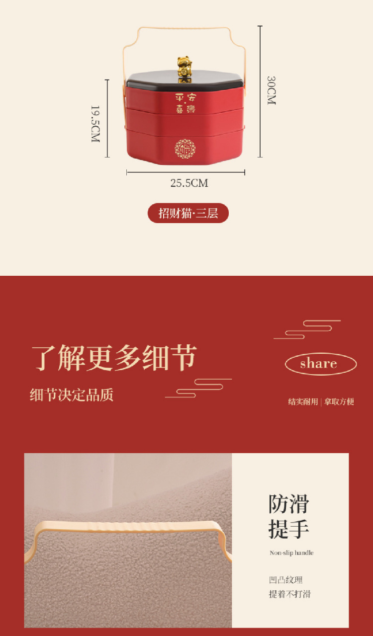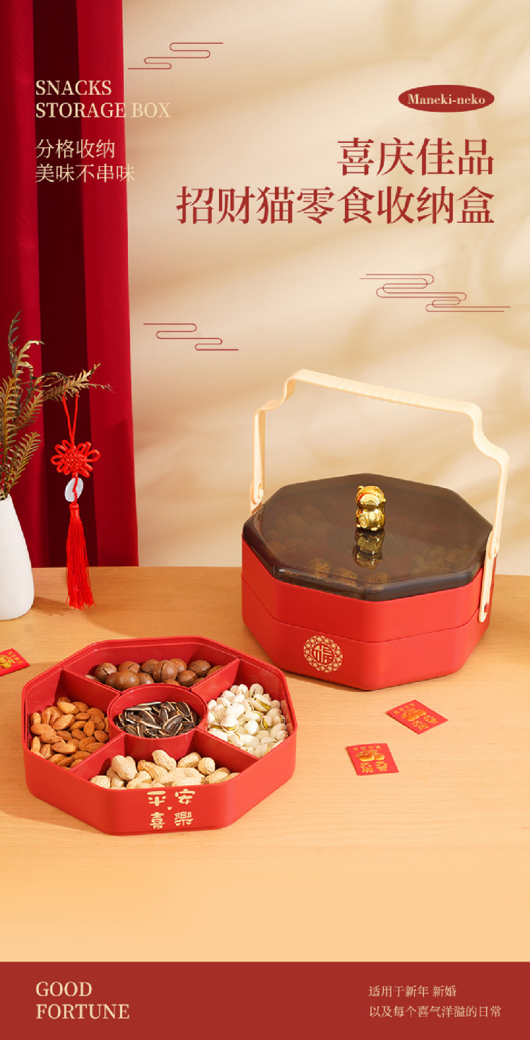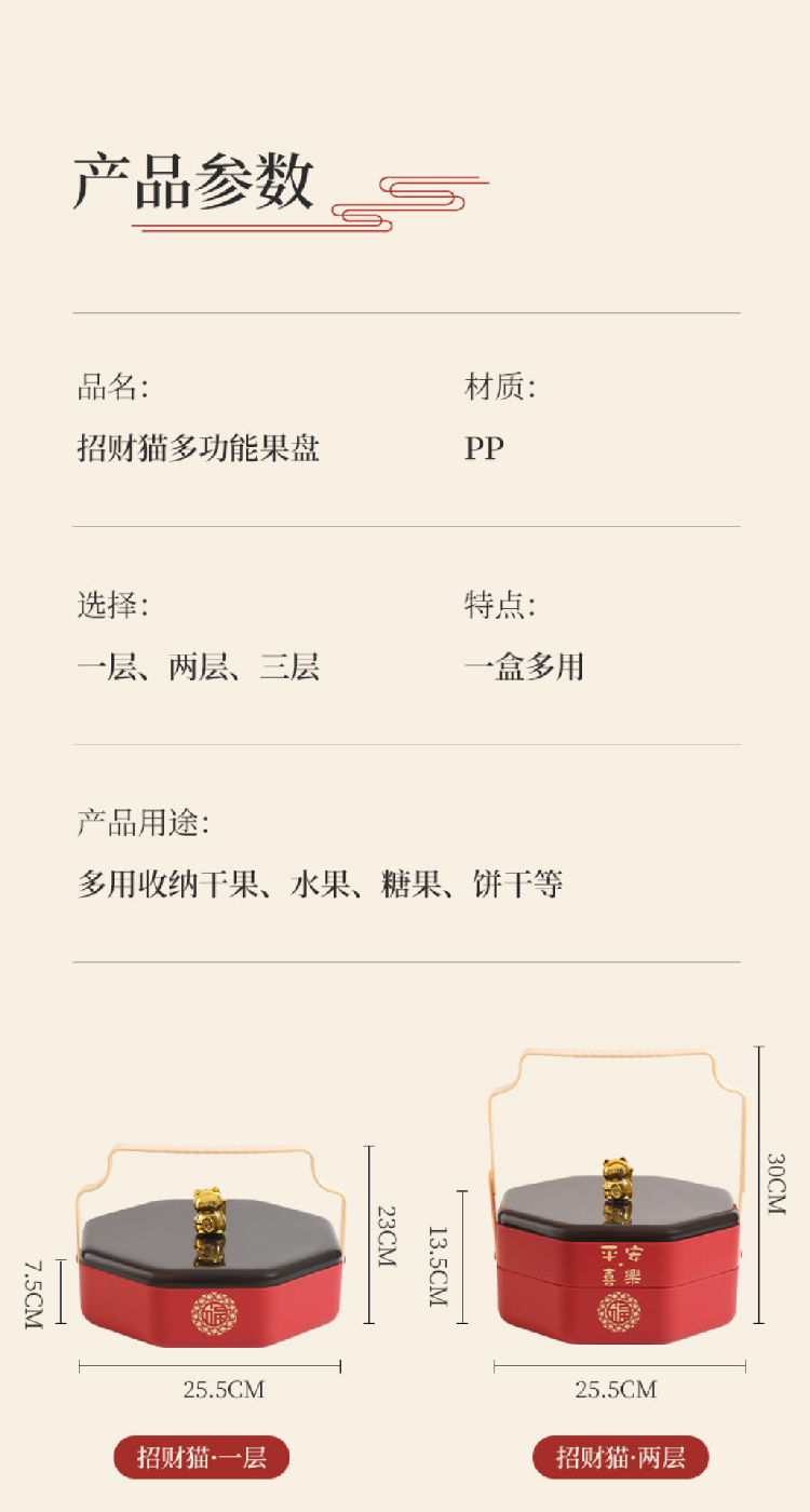 【新年大吉】2024新中式新年糖果盘三层 家用客厅茶几水果坚果盘乔迁之喜