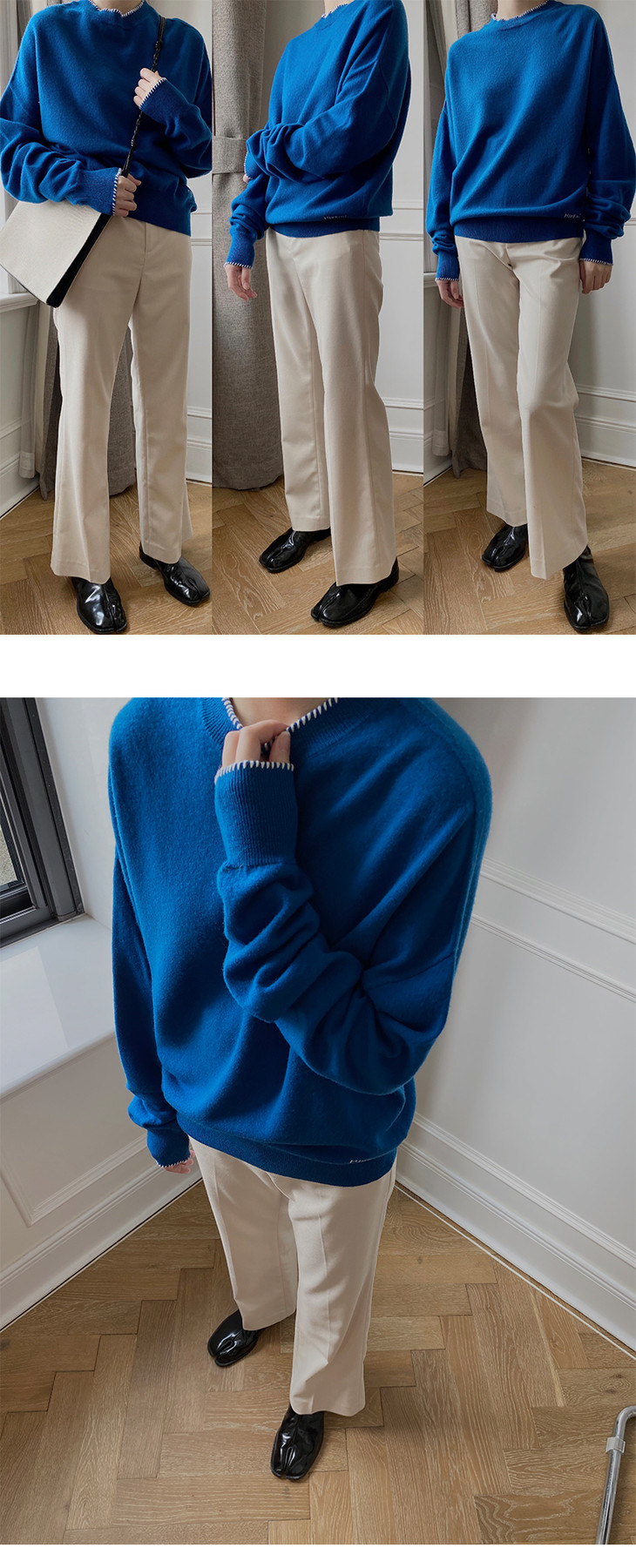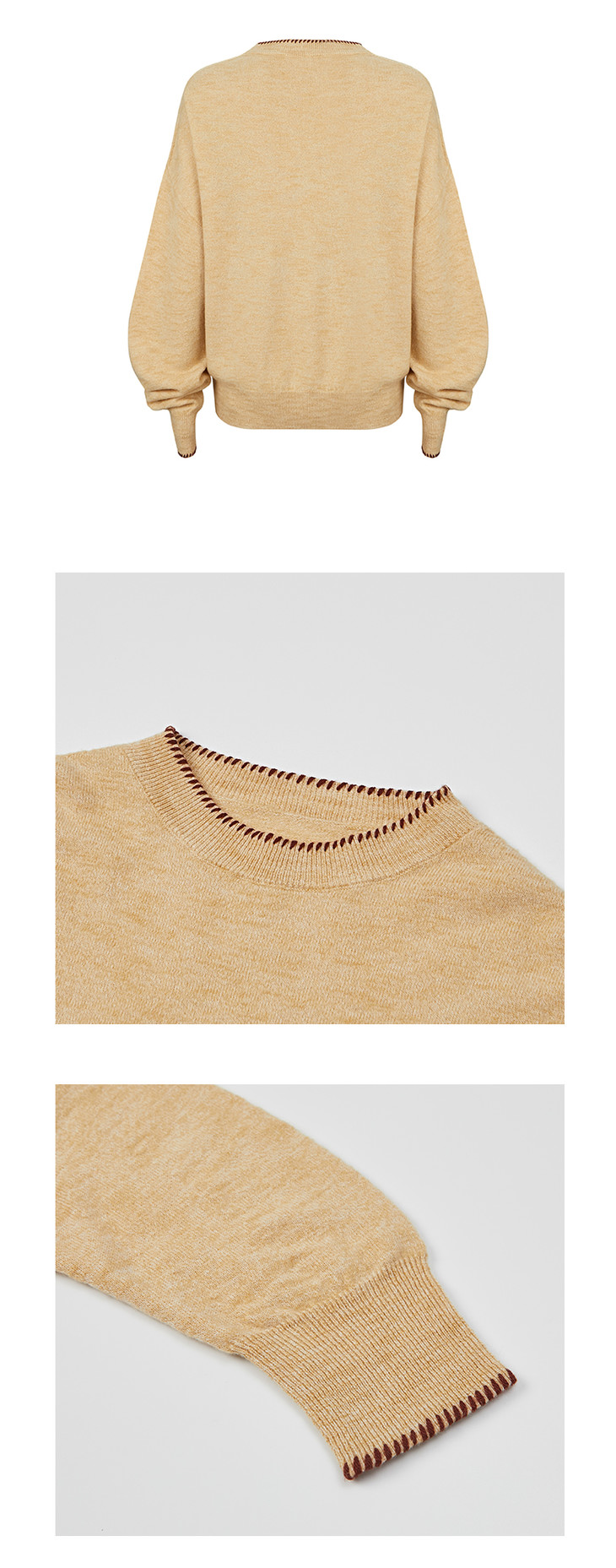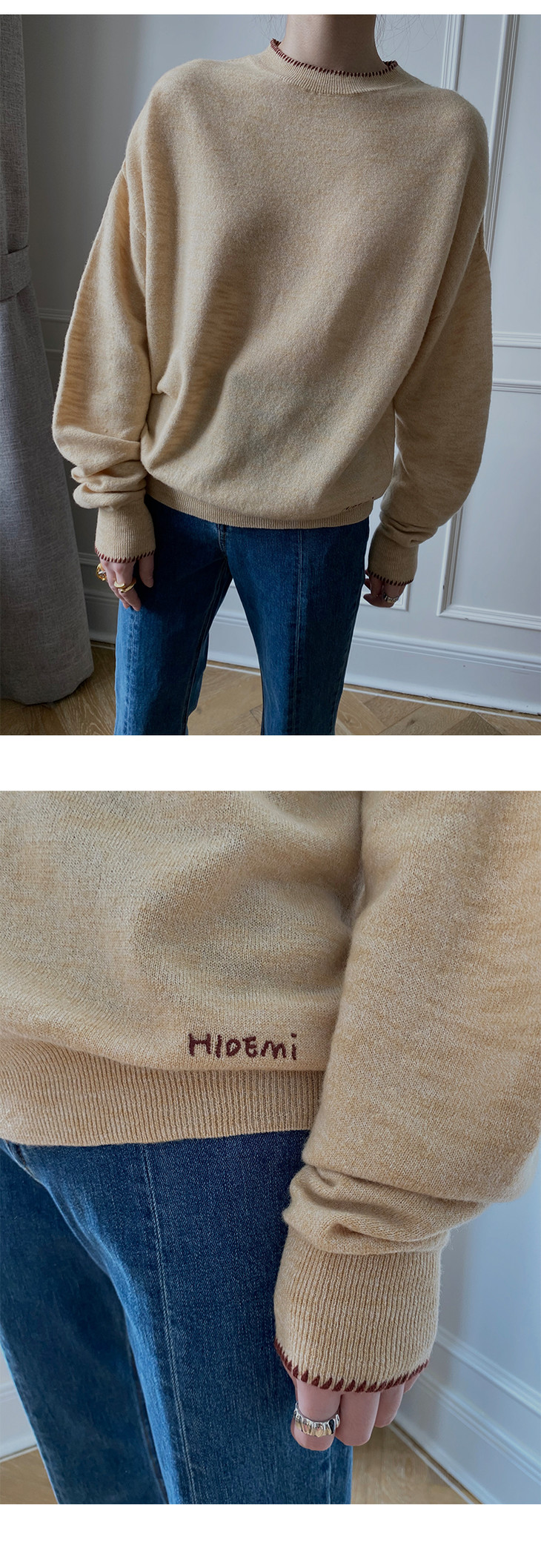 HIDEMI 本季必入/美利奴羊毛/趣味手工齿轮小撞色款廓形堆堆袖毛衣(字母刺绣设计)