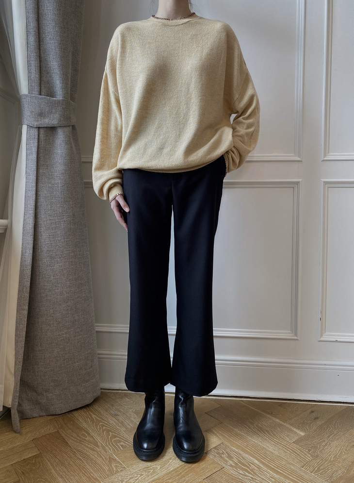 HIDEMI 圈圈羊驼毛粗针宽松毛衣 黑色/自然驼