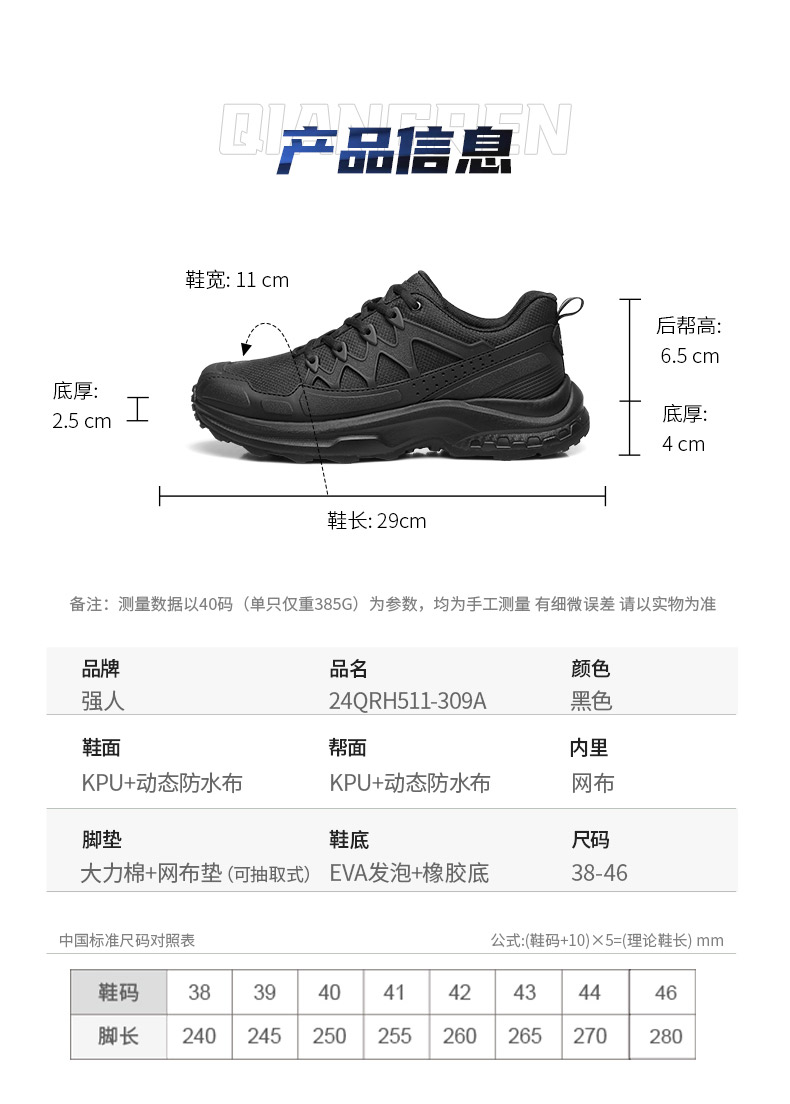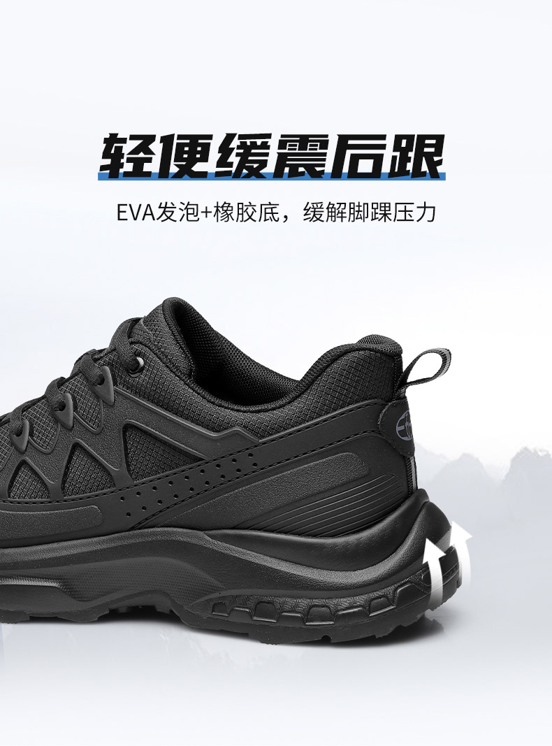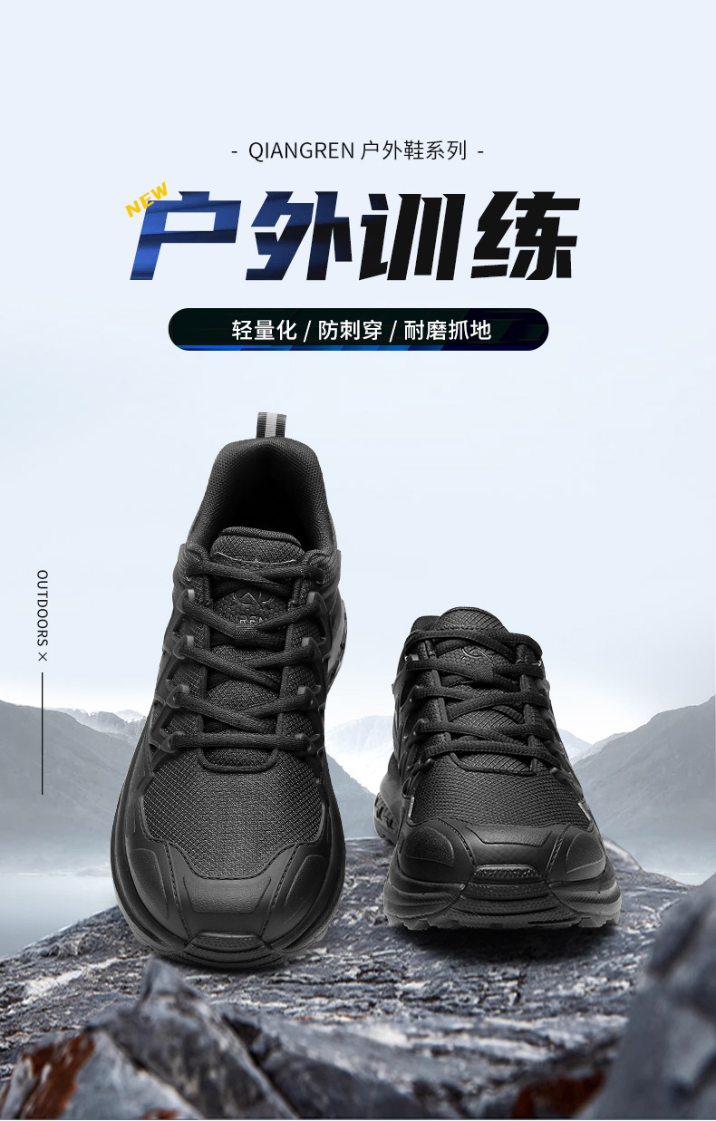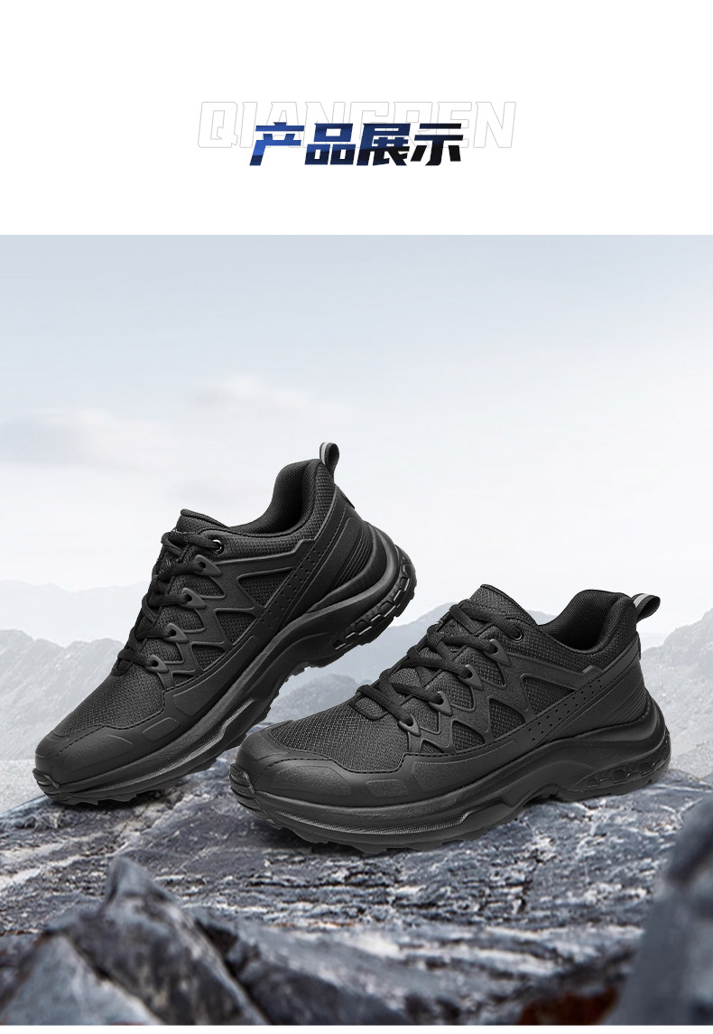 强人3515春季黑色户外休闲鞋轻便耐磨跑步训练鞋低帮防刺穿登山鞋