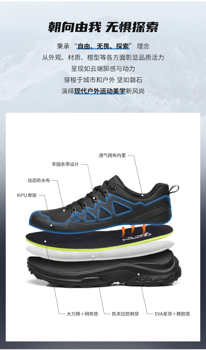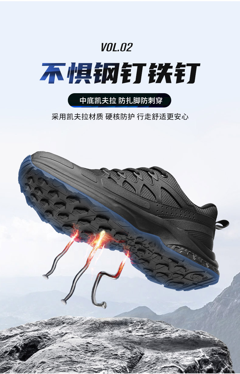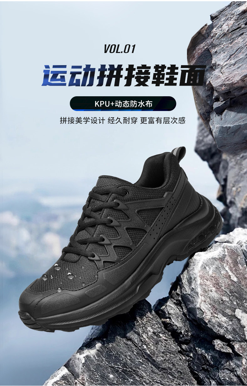 强人3515春季黑色户外休闲鞋轻便耐磨跑步训练鞋低帮防刺穿登山鞋