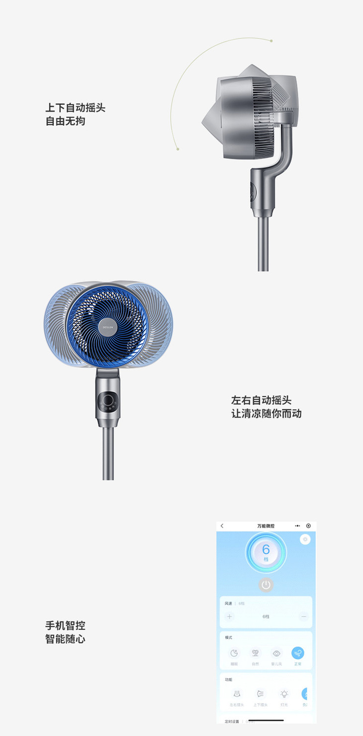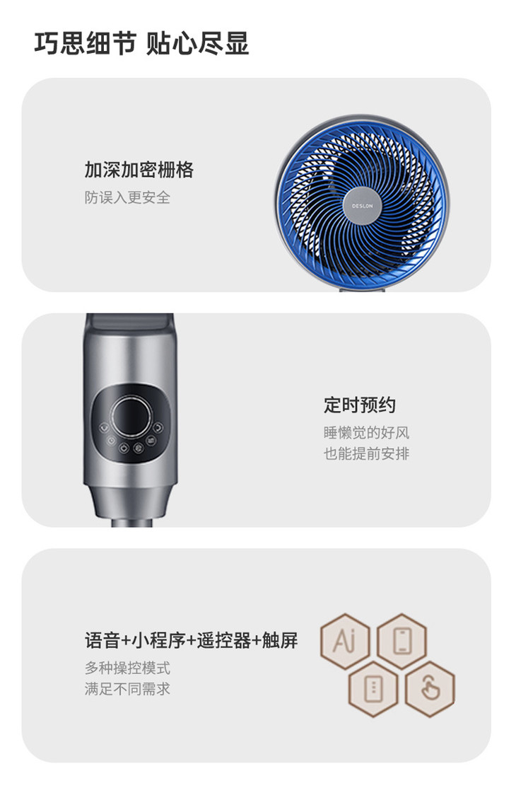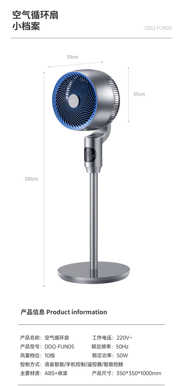 德世朗空气循环扇 ✅语音智控循环扇,循环宰内清新空气 ✅多种操控模式:语音智控/手机智控/連控器/智触控 ✅十挡风速可调,匹配专属自己的适宜风量 ✅上下自动摇头 +左右自动摇头,大范国广角送风; ✅轻音运行,低嗓降音,可安心熟睡 ✅支持1-12小时定时,打造清凉舒适的可手。 功能不要太完美了!!!