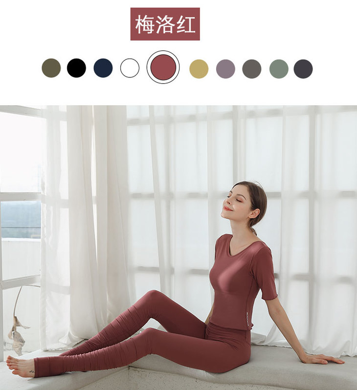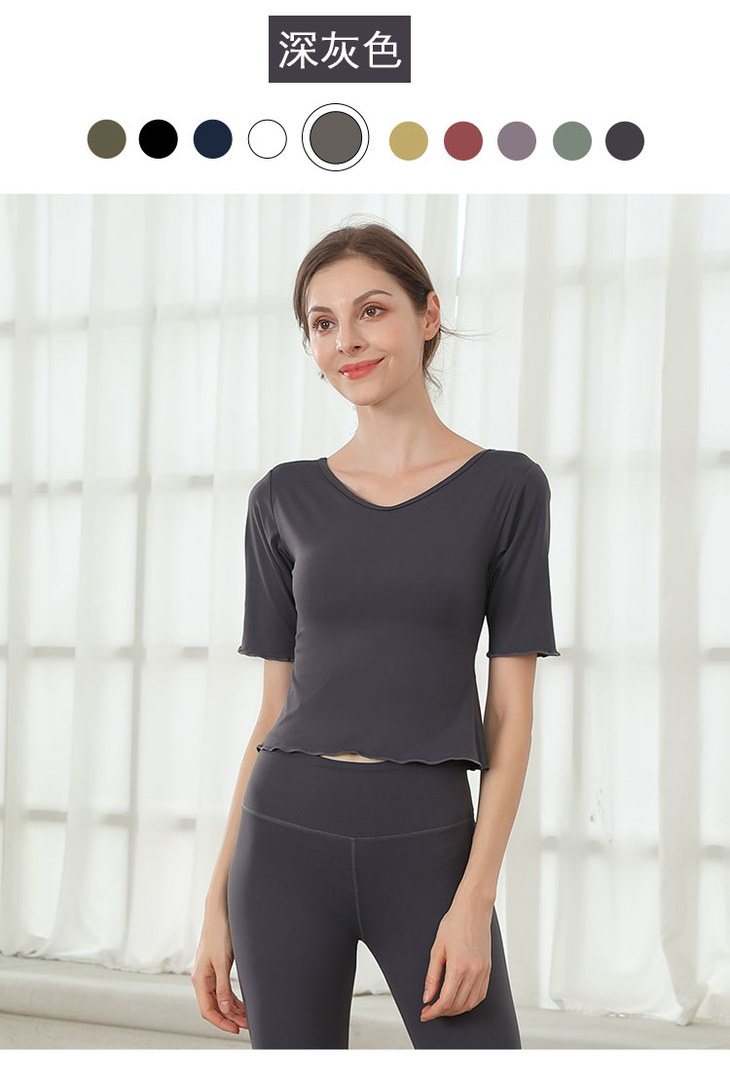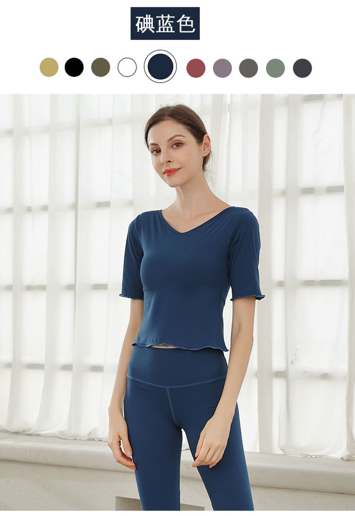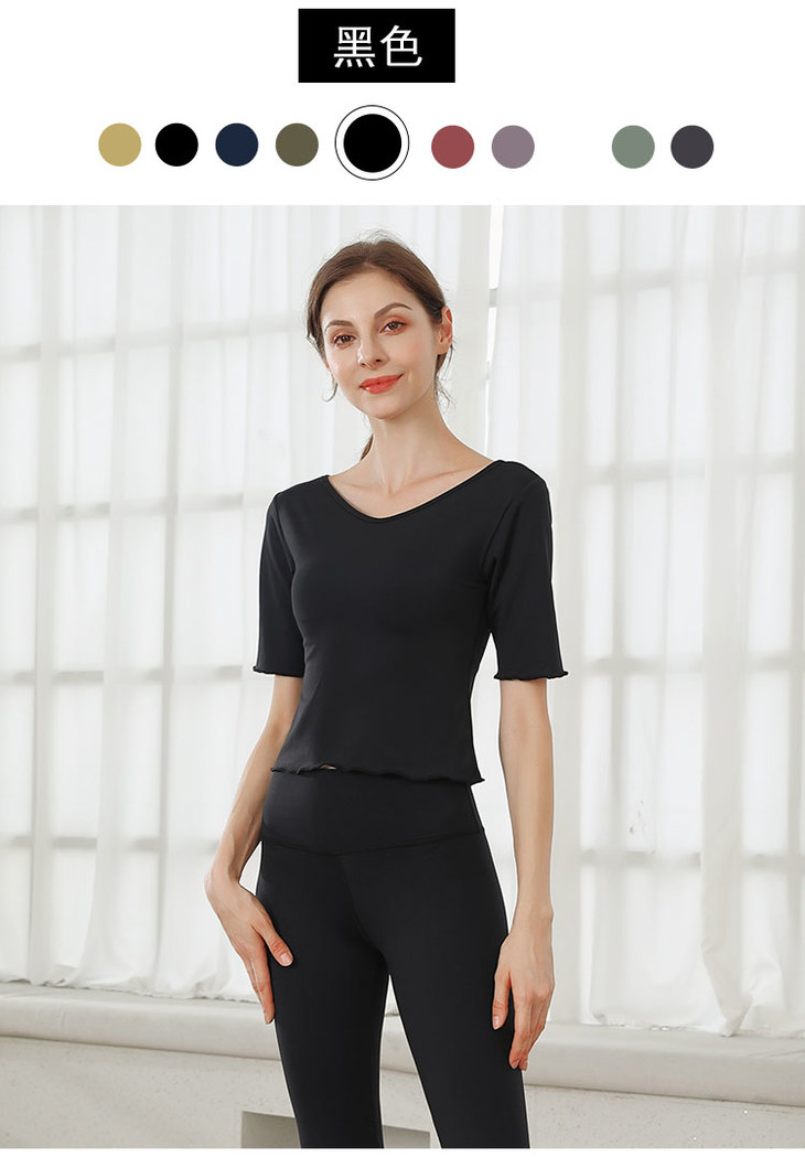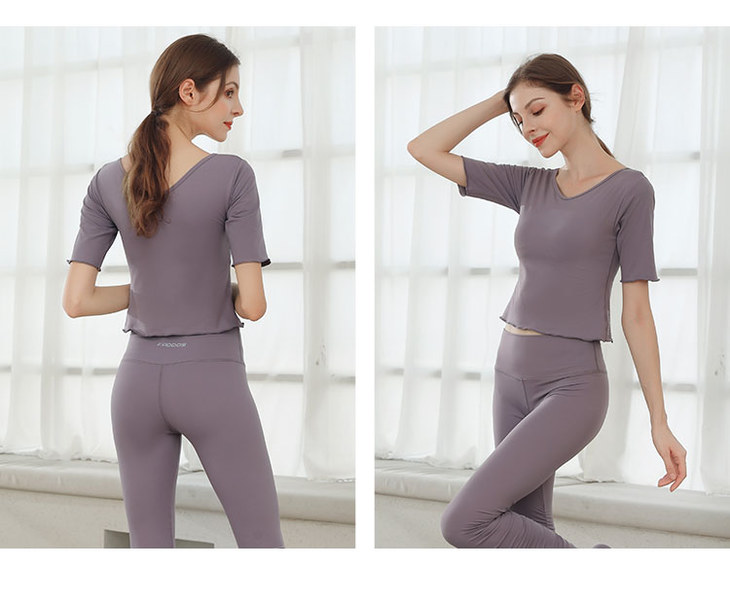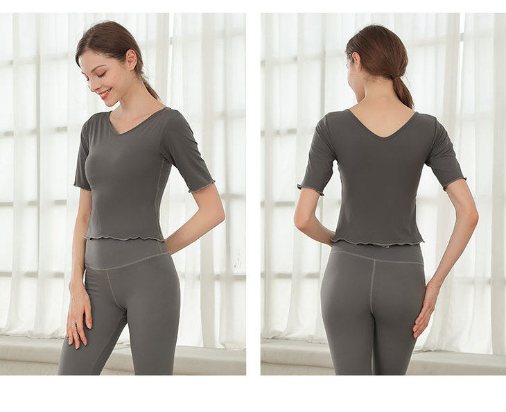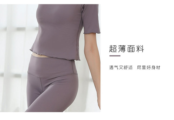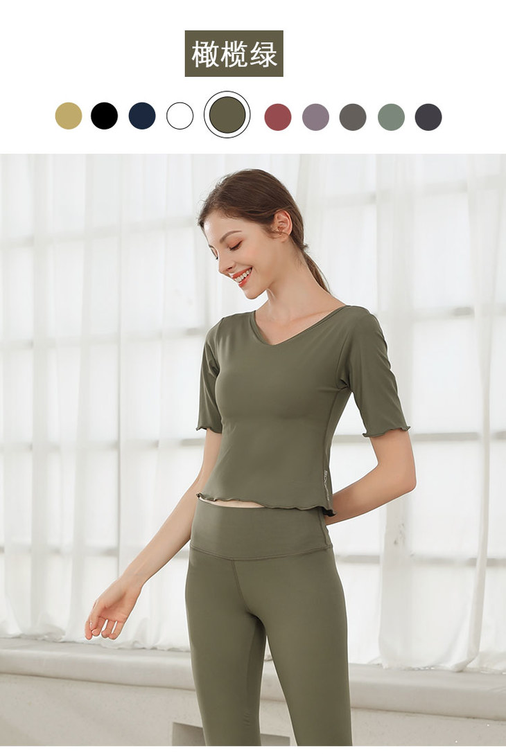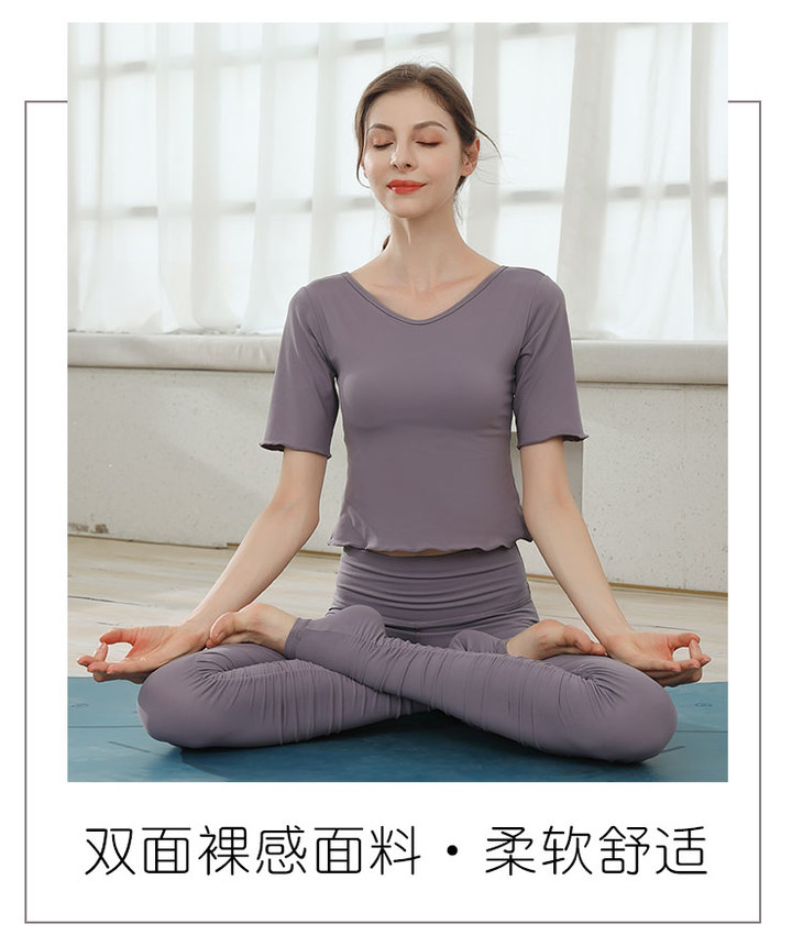 F202019梵蒂欧瑜伽服套装中袖上衣抽皱裤子
