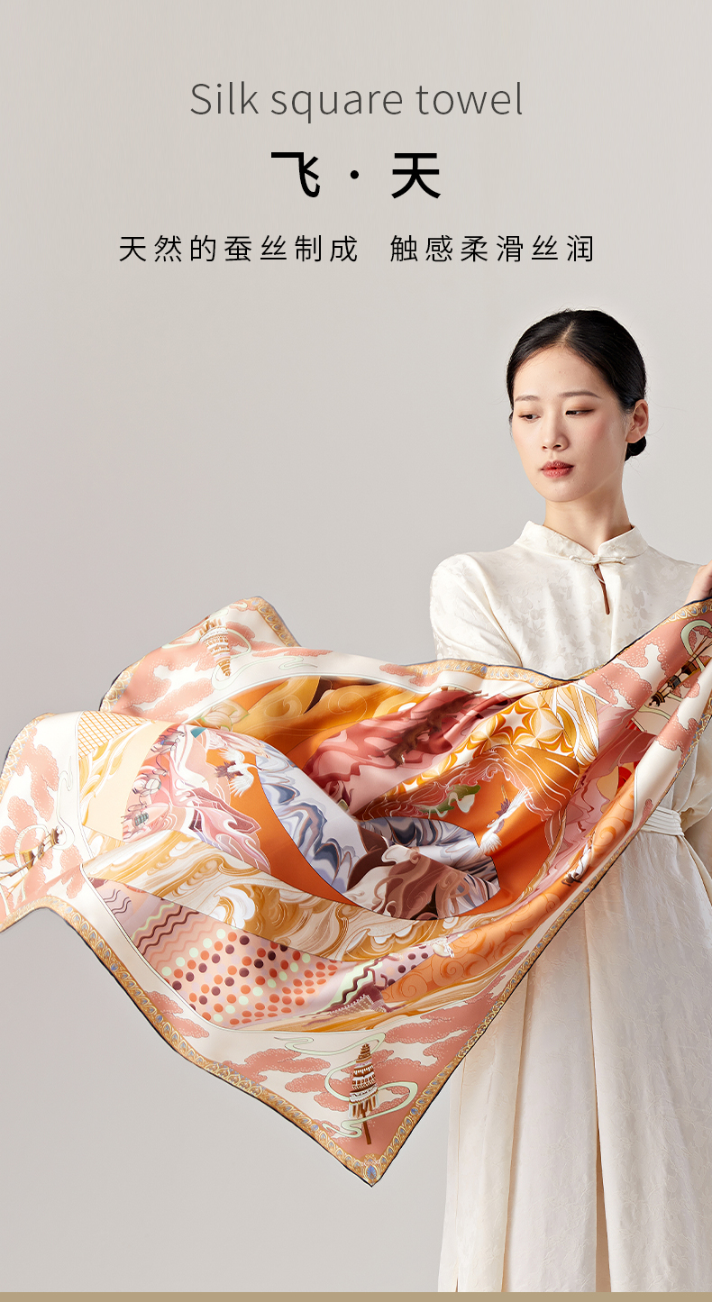SAINTJOY/上久楷真丝方巾 双面印花真丝方巾 飞天 FJS23031