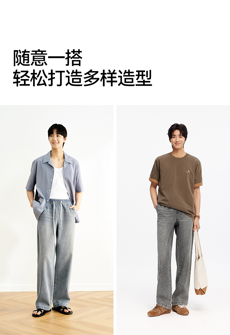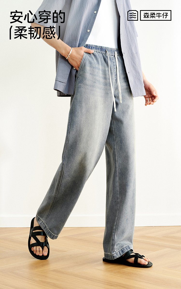 森柔牛仔|森马牛仔裤男复古港风宽松直筒裤2025夏季新款长裤潮流