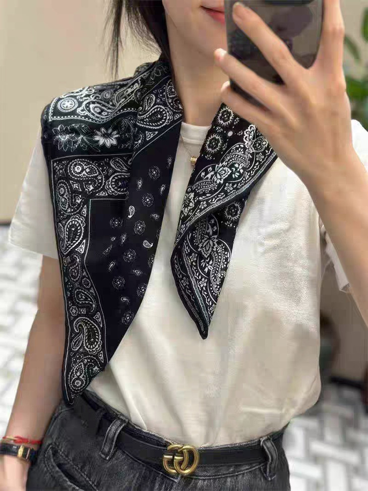 在时尚界,丝巾一直以其独特的魅力和多变的风格深受女性们的喜爱。 而大牌风的丝巾,更是将优雅与时尚完美融合,成为众多时尚达人的必备单品。 一款大牌风的丝巾,往往以其精致的设计和卓越的品质脱颖而出。 它可能采用高档的丝绸材质,触感柔软而光滑;也可能运用独特的印花技术,将精美的图案栩栩如生地呈现在丝巾上。