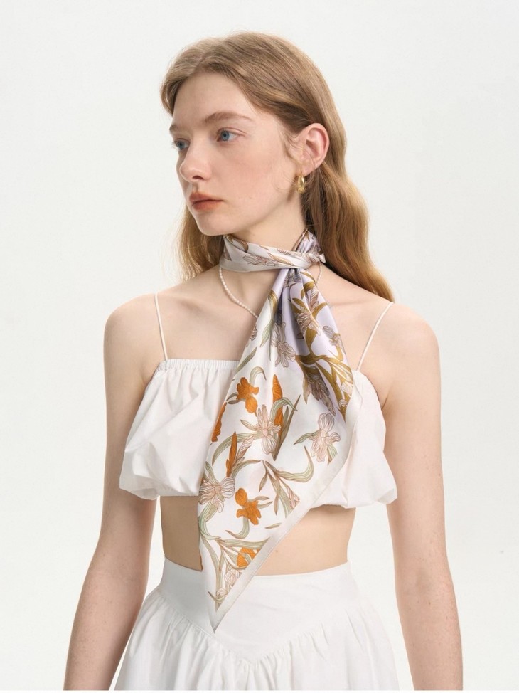 丝巾 它不仅仅是一件配饰,更是一种生活态度的展现, 是对传统文化的致敬,也是对现代时尚的诠释。 选择一款东西方结合的丝巾,让 古典韵味与现代时尚在你的身上完美交融,绽放出独一无二的光彩。
