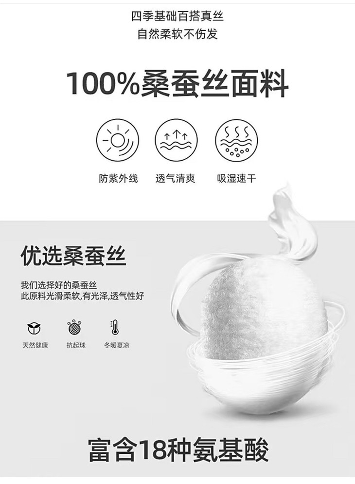 "冬穿羊绒、夏穿丝",真丝在人们的印象里是高贵典雅的象征,被称作人的"第二层肌肤" 真丝之"娇" 真丝自古以来就有"纤维皇后"的美誉,主要成分为纯天然动物蛋白纤维。 到了现代,人们又赋予了它"健康纤维"、"保健纤维"的美称。 真丝纤维中含有人体所必须的18种氨基酸,与人体皮肤所含的氨基酸相差无几,故又有人类的"第二皮肤"美称。 因此,真丝是任何纤维都无法相比的、无法替代的。 真丝之"姆米" "姆米"是真丝克重单位,1姆米=4.3056克/平方米,代表面料厚度。数字越大,面料越厚重。而我们的丝巾采用的是12姆米的。 真丝之"等级" 6A级的是生丝的品质等级,6A级是最好的整,品级从上到下分别为:6A、5A、4A、3A、2A、A、B、C、D、E、F级和级外品。 其实4A以上的品级就已经是很好的真丝品质了。6A 的已经是实属难得了。