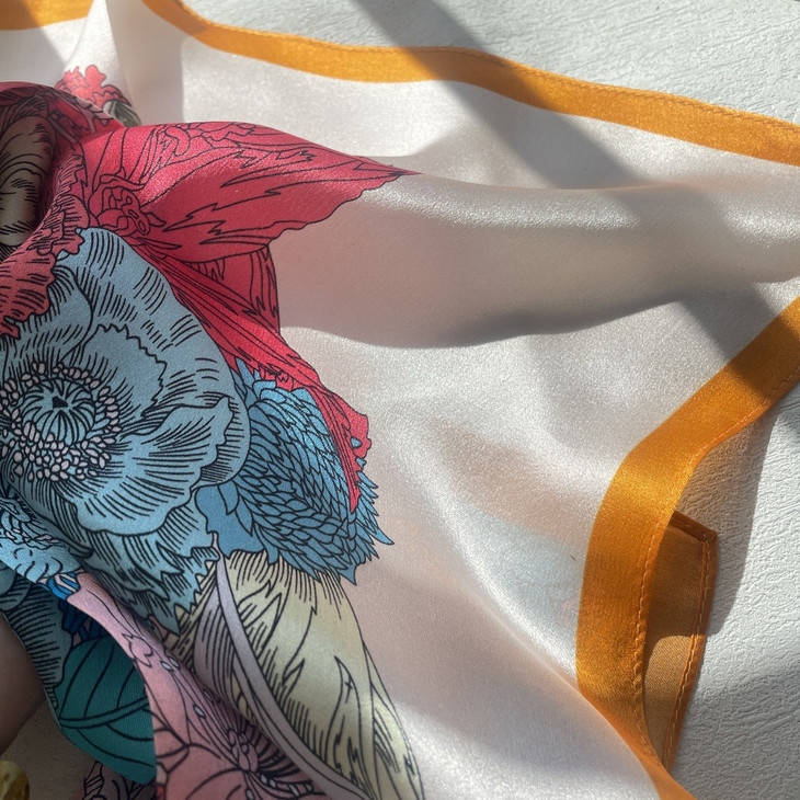 春季拥有精致贵感的秘诀是..当然是戴上一条丝巾啦 一到初春走在大街上,看到的都是黑白灰棕 而丝巾搭配纯色衣服效果是最显著的 毫不费力的优雅贵气,当然真丝丝巾是最近的心头爱 取生活时尚色彩为元素,予以100%6A级桑蚕丝制作 小众华丽而有趣,希望这条有时间魔法的丝巾 能为你定格生活中所有美好瞬间