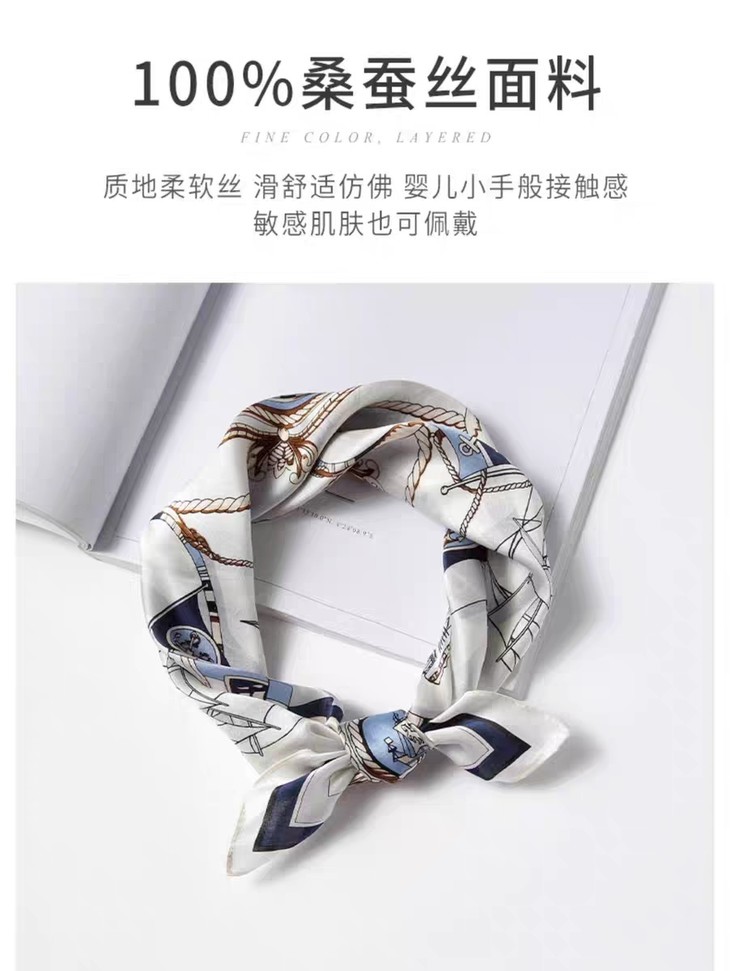大牌风丝巾:优雅与时尚的完美融合 当然也有明星杨采钰同款丝巾!高级知性穿搭 想要提升气质,这款杨采钰同款法式小丝巾绝对不能错过! 它那高级的色调,搭配任何服装都能增添一份北欧的复古与优雅。 作为真丝材质,触感柔软顺滑,佩戴起来舒适度满分! 不仅如此,丝巾上的牛仔裤提花设计,小众而不失时尚感,让你的个性焕发独特魅力。 不只是佩戴,它还能多种方式进行搭配,披肩、包袋、发饰…多种玩法等你来探索! 快来尝试这款丝巾,做个有气质、知性的女子吧!