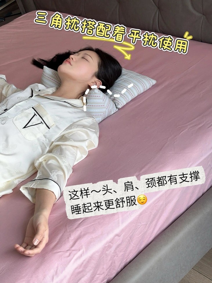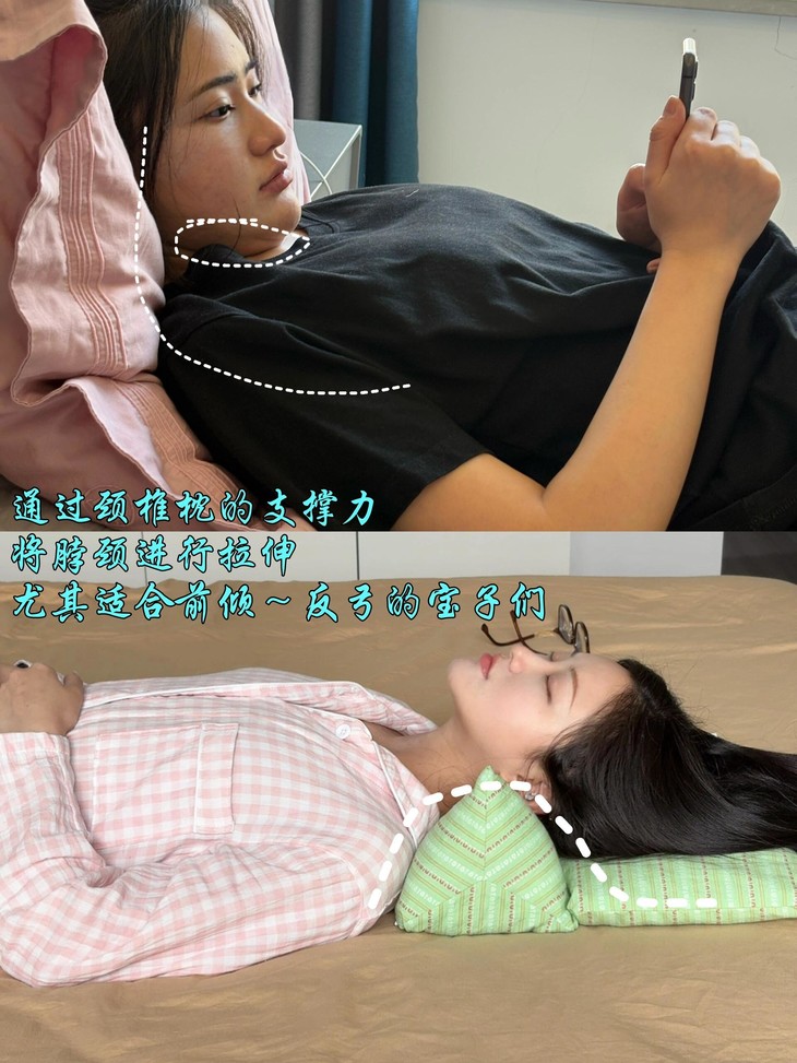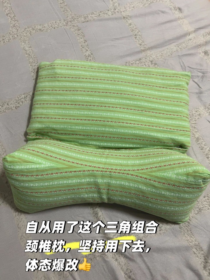 ✅三角枕中间低,两边高,可以很好贴合拉伸咱们的颈部曲线〽️拉伸完整个脖子感觉被打通了一样,很放松很舒服
