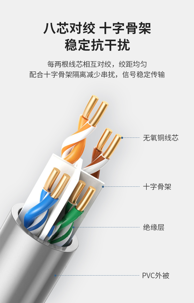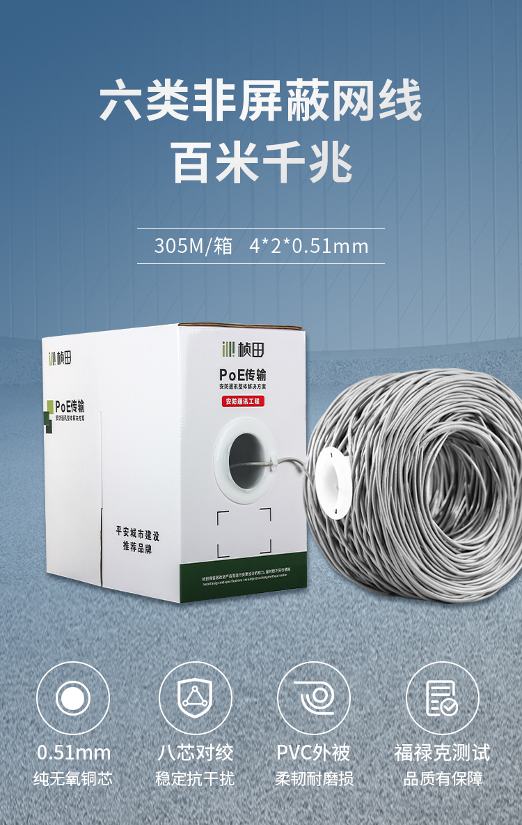 六类非屏蔽无氧铜网线(8*0.51)305米 灰色 5027GY