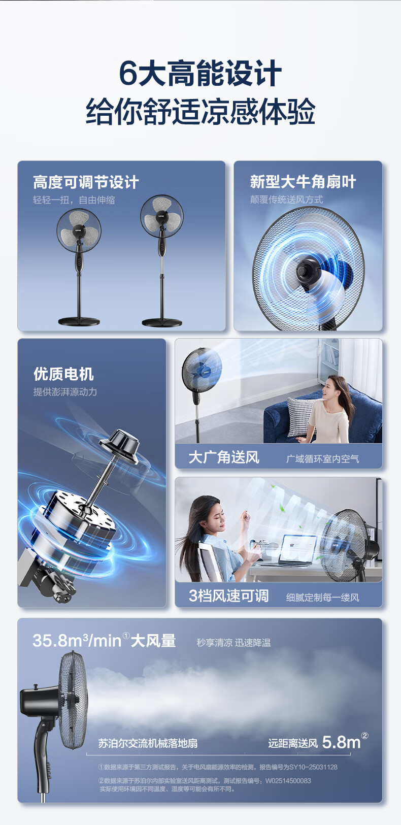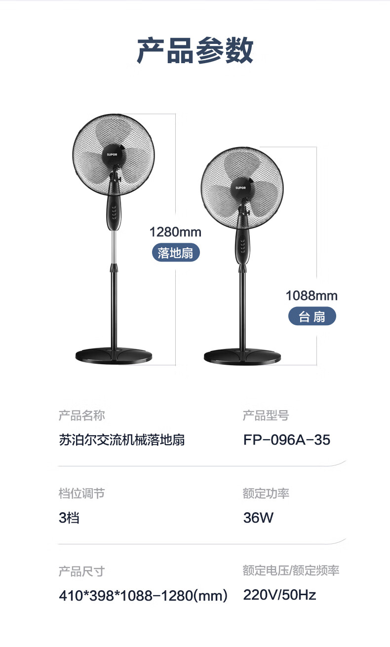 苏泊尔(SUPOR)ZMD安心系列 电风扇FP-096A-35 黑色