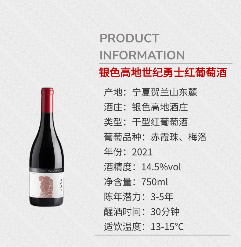宁夏银色高地世纪勇士红葡萄酒2021年 商品图3