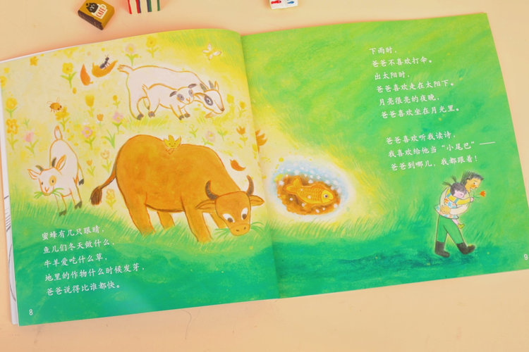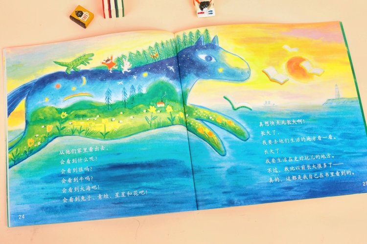 轻盈通透的水彩写实风,如《爸爸的高台狮舞》《谁是最出色的诗人》《我要去远方!》;