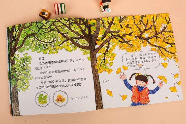 《树木》——硬核的非虚构科普,带孩子了解中国特有的“国宝树种”,以及我国与树木有关的文化内涵。整本书通过实物照片+插画的形式,为孩子们呈现出超多有趣的知识点。