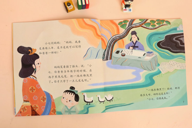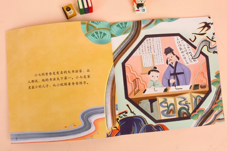 《小七练书法》——改编自大书法家王羲之、王献之父子的故事。通过小七坚持不懈苦练书法的故事,让孩子从中感悟到,做任何事,都要长期坚持,并虚心求教,才能学有所成。