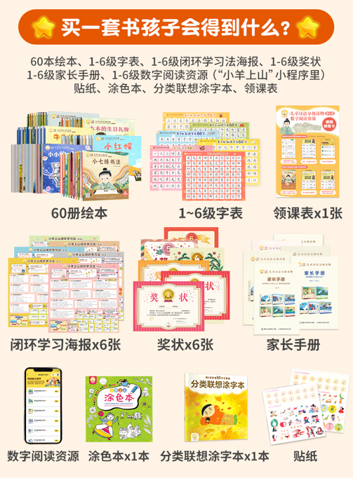 孩子读完《小羊上山》前6级,小学一年级上册语文课本的识字表已基本全掌握,应对一年级上学期的学习任务会更加得心应手,为孩子入学打好基础。