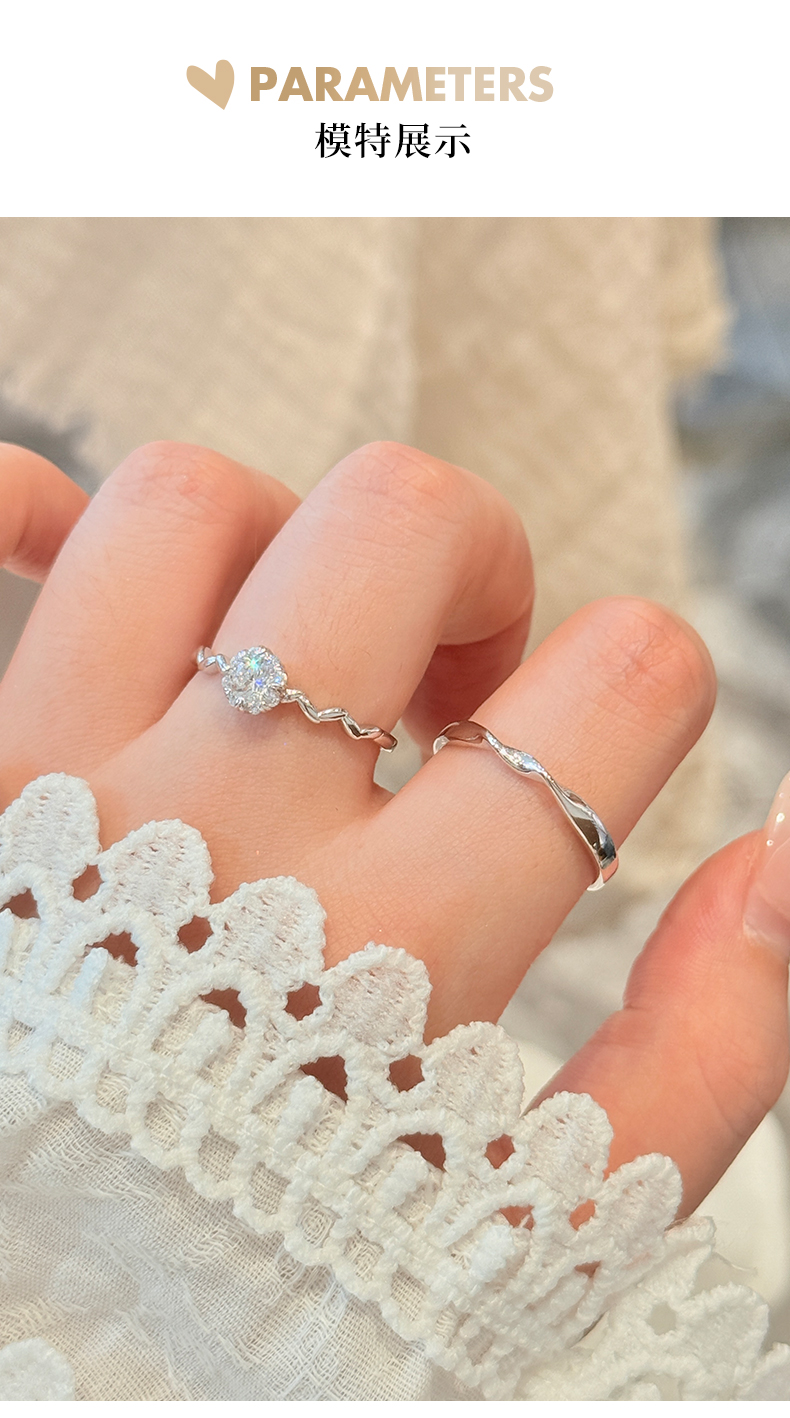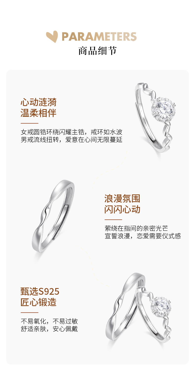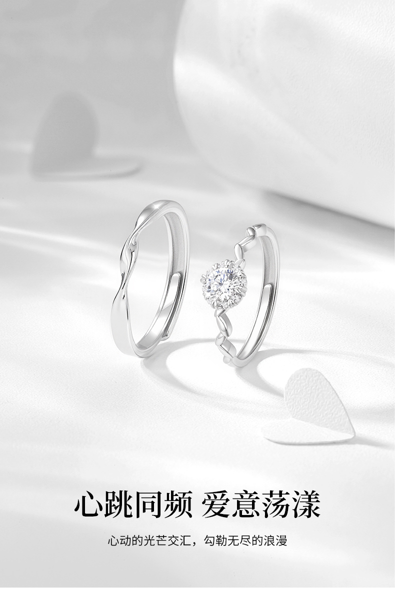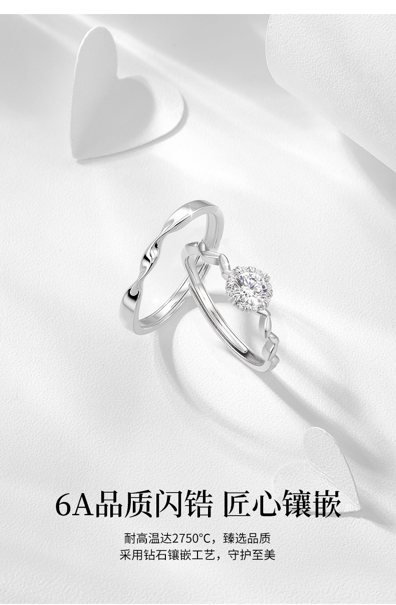 卡蒂罗KADER 心波荡漾情侣对戒 经典造925银大颗闪锆手捧花造型设计可调节一对 简约百搭钟爱久久求婚配饰恋爱告白
