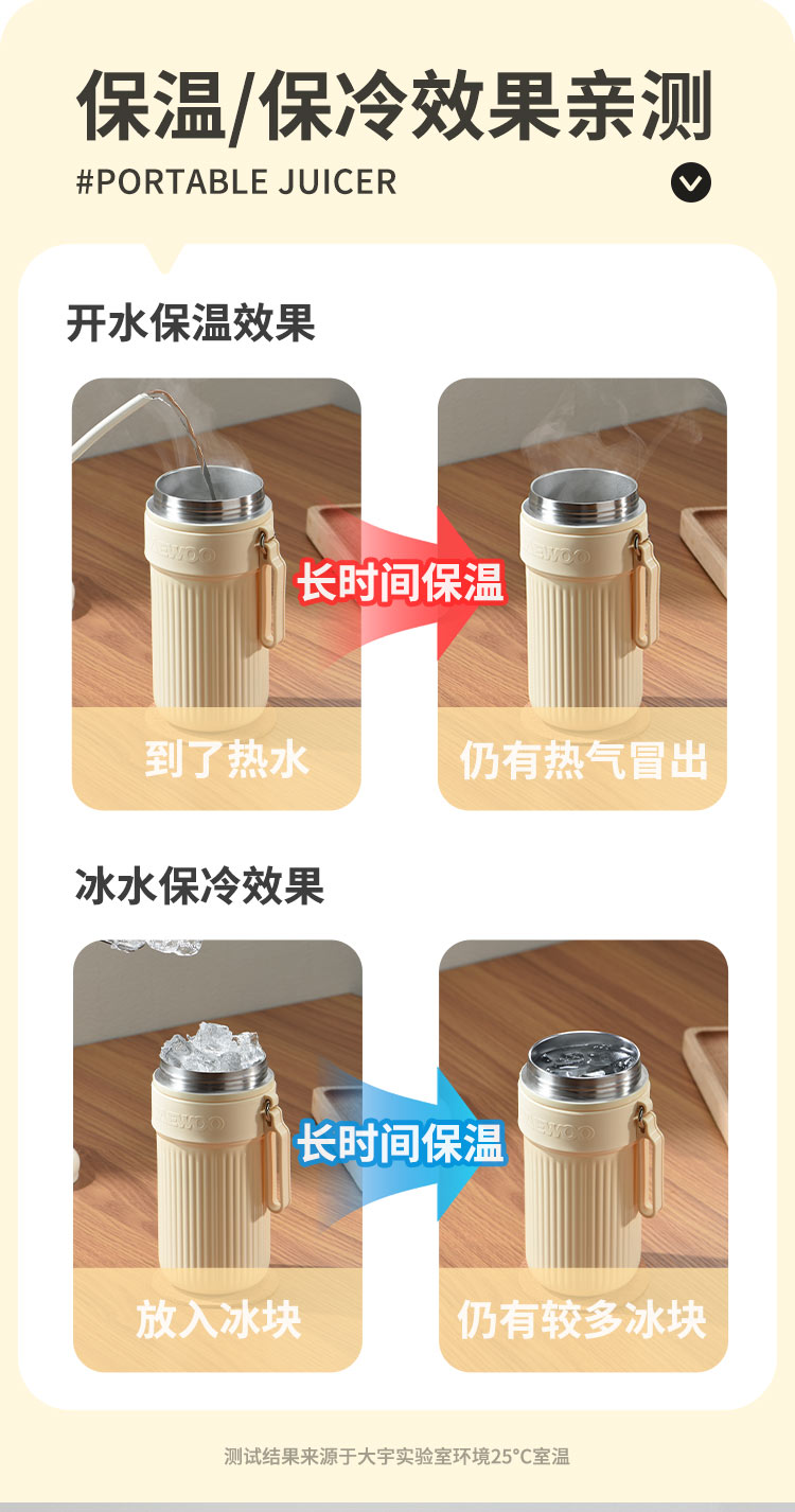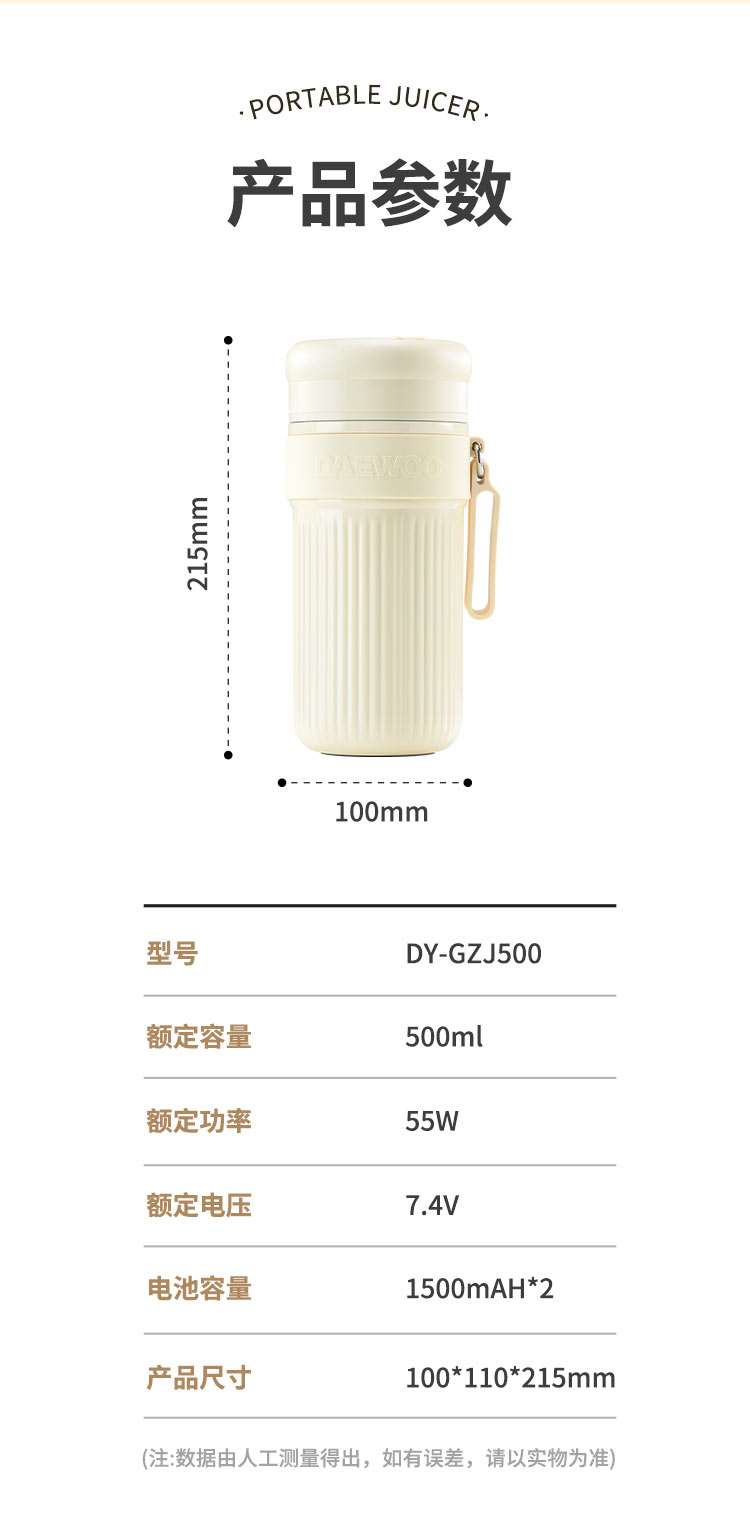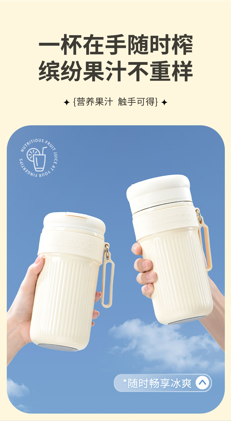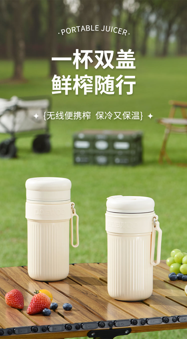 【一杯双盖 鲜榨随行】大宇便携式榨汁杯 10叶三层旋风刀片 果汁秒榨 整冰能碎 无线便携 保冷保温 500ml大容量DY-GZ01-X