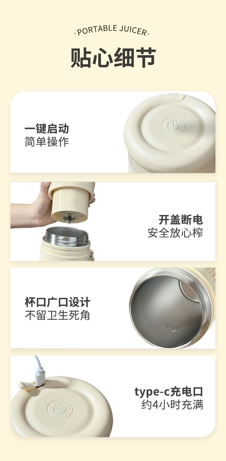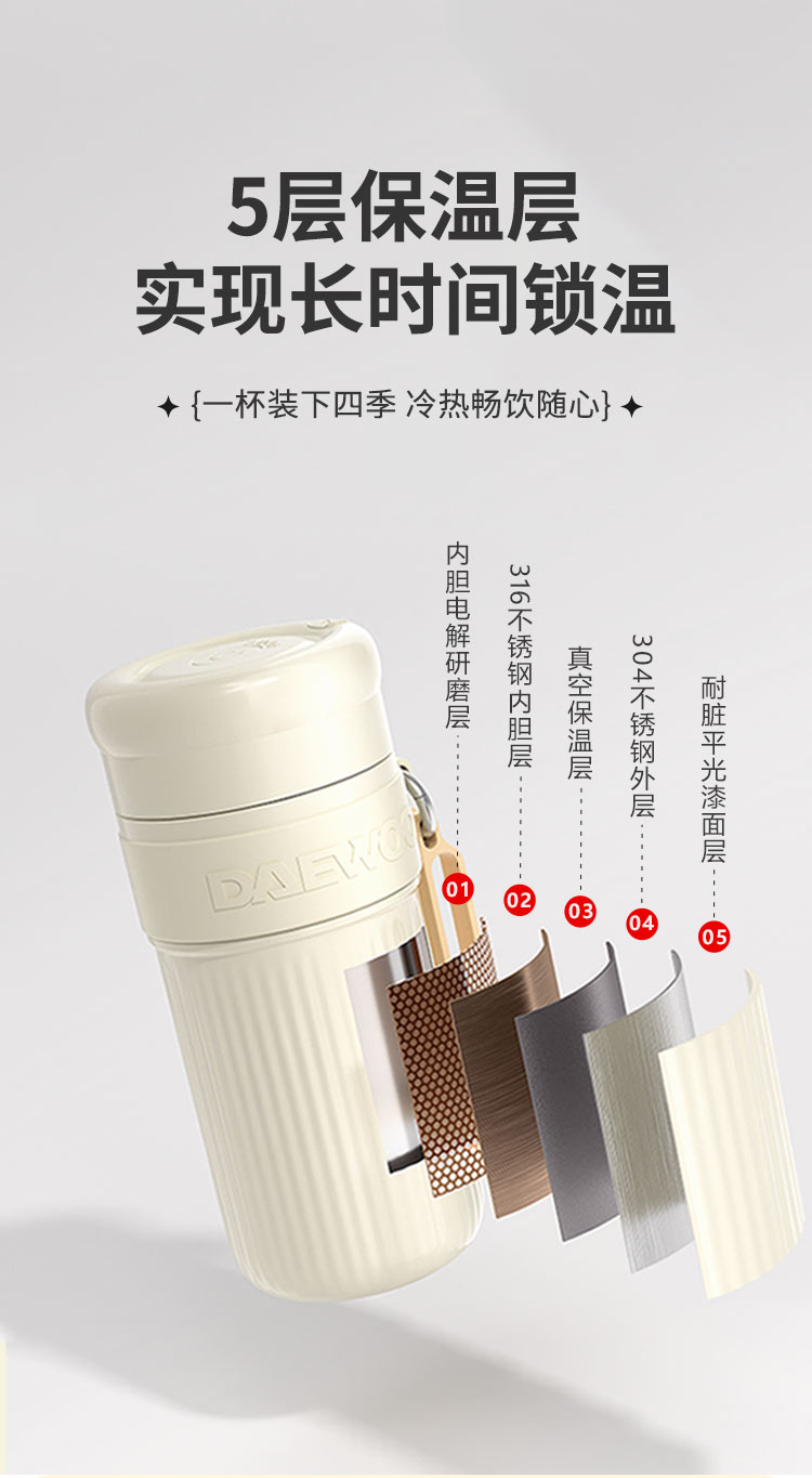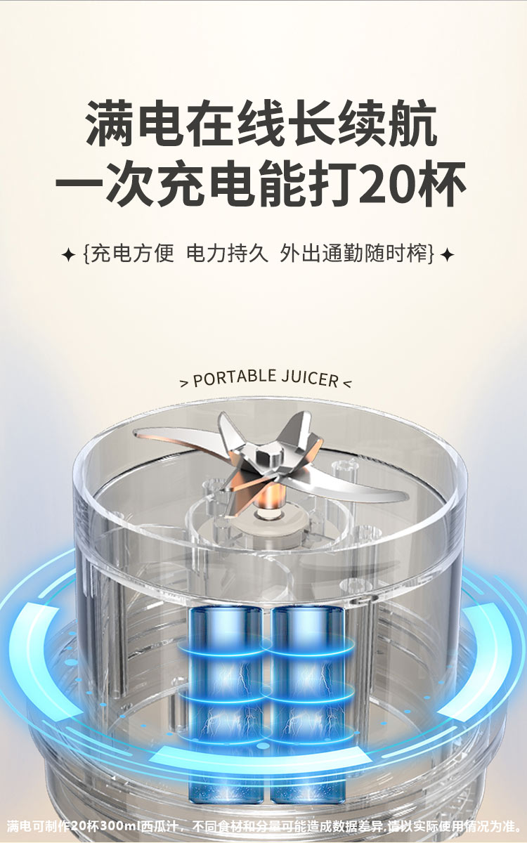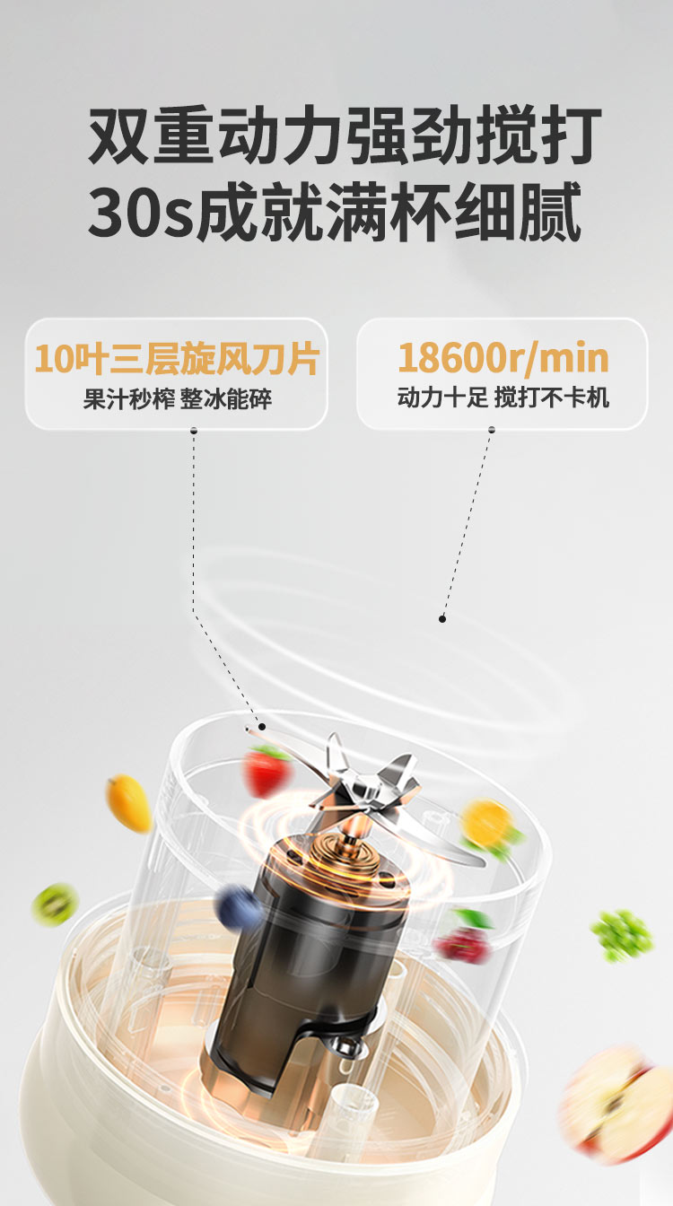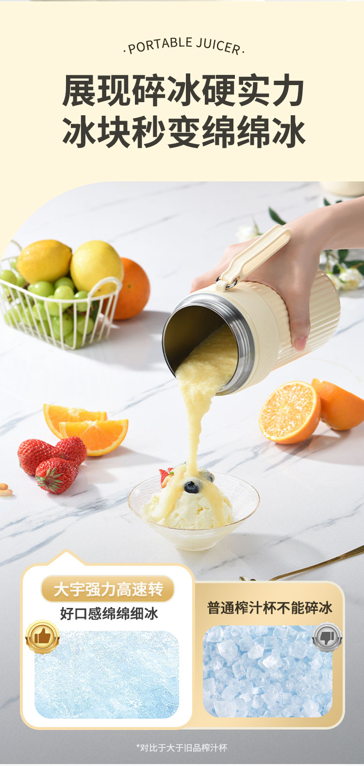 【一杯双盖 鲜榨随行】大宇便携式榨汁杯 10叶三层旋风刀片 果汁秒榨 整冰能碎 无线便携 保冷保温 500ml大容量DY-GZ01-X