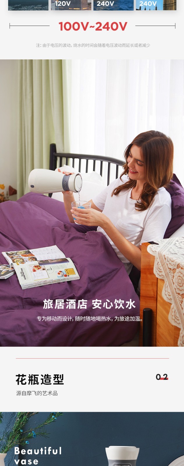 【一般贸易】摩飞便携式烧水壶家用自动断电折叠水壶小型旅行电热水壶保温一体