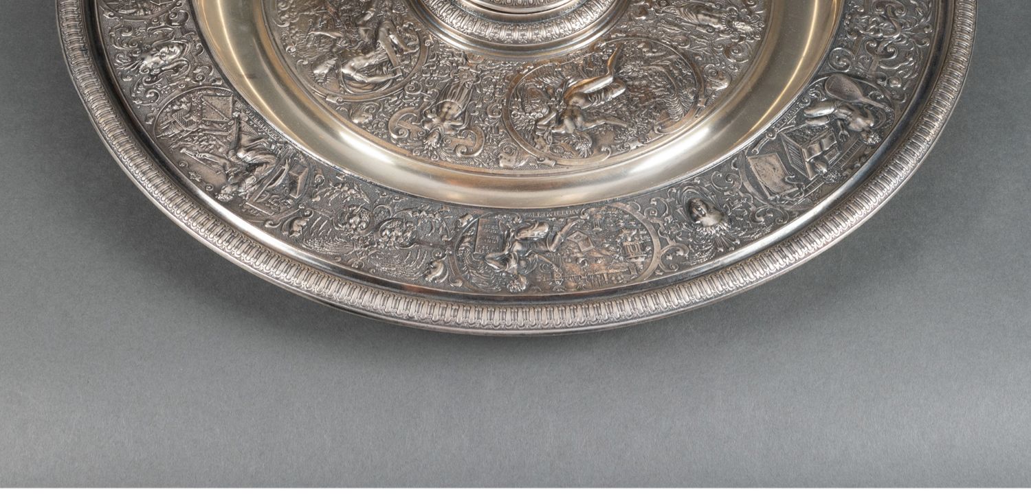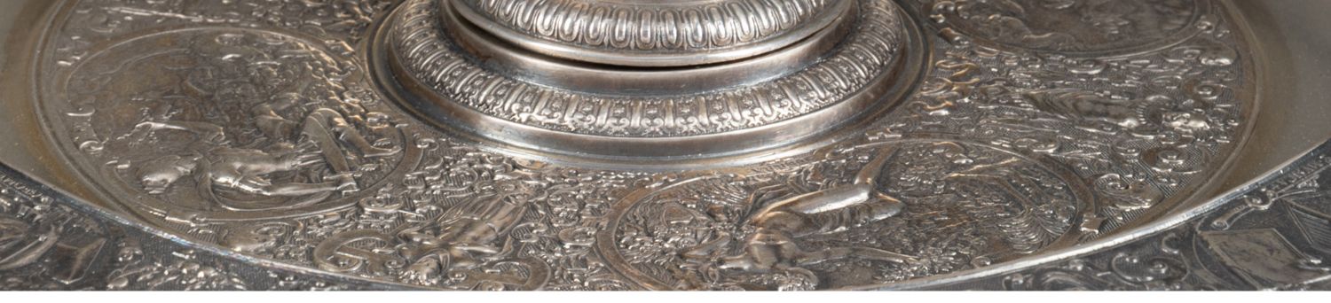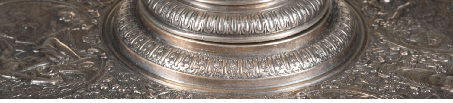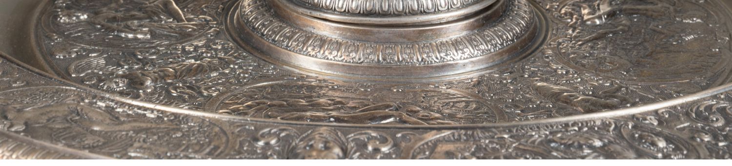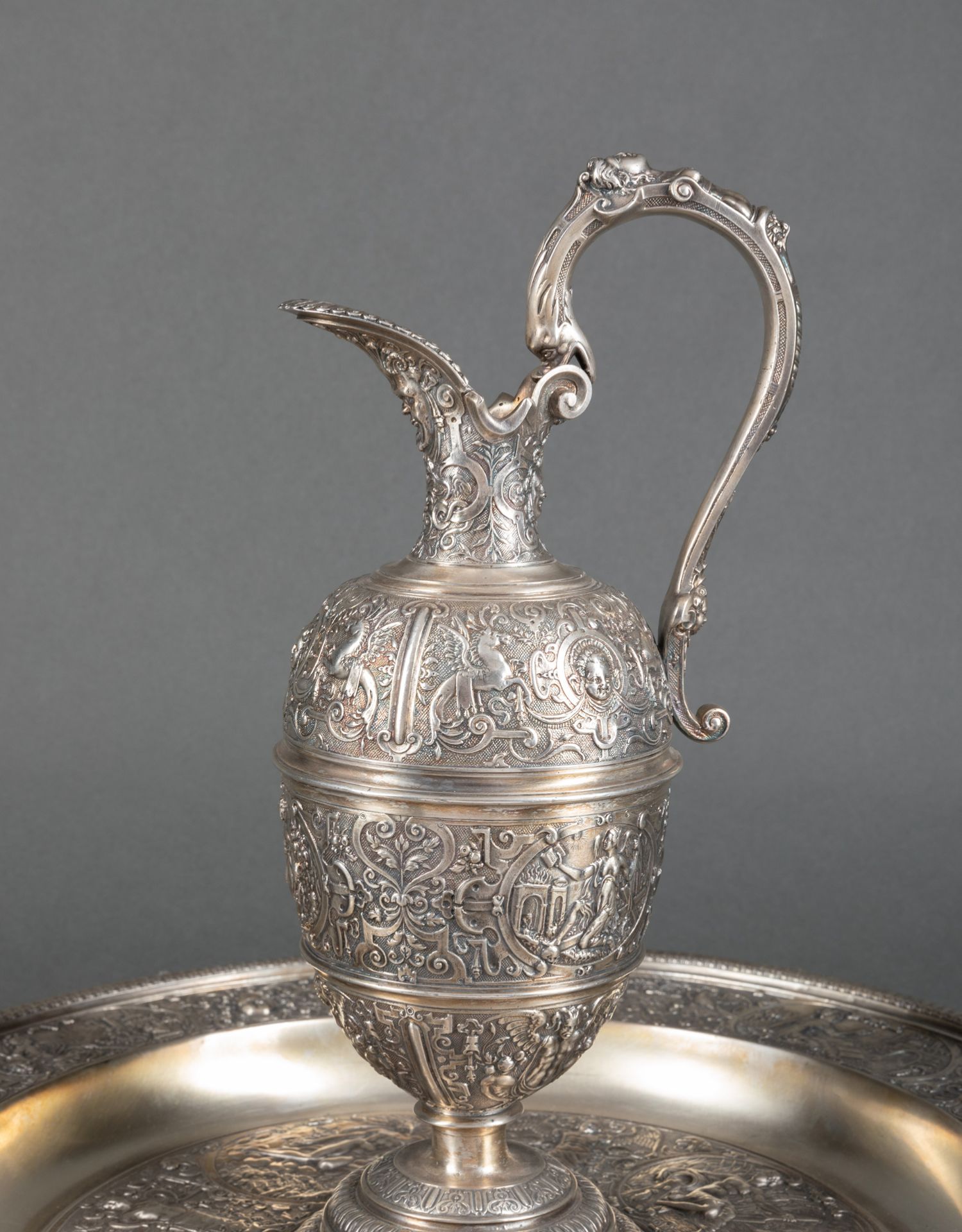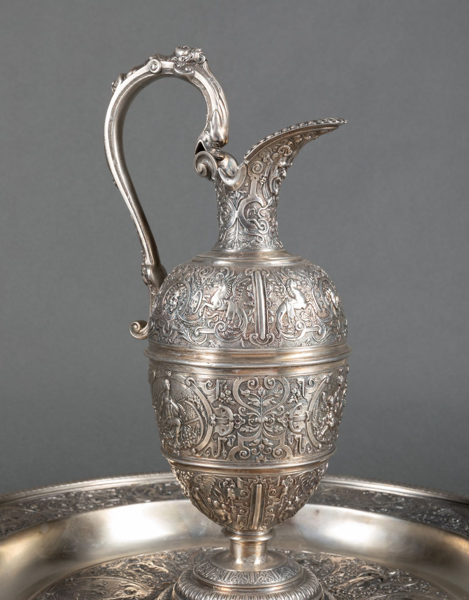 独角鹿西洋古董银器法国浮雕信望爱主题镀银水壶玫瑰露水盘