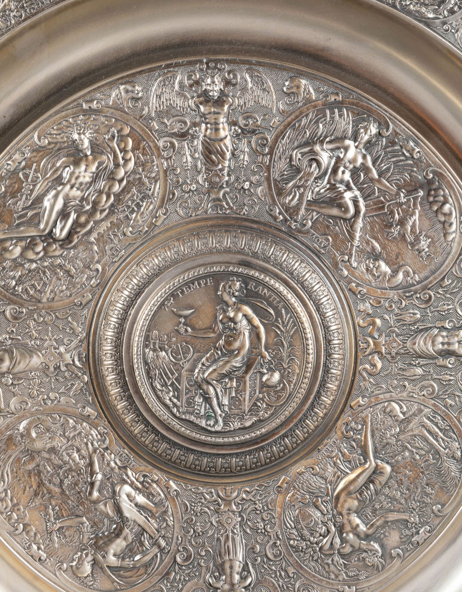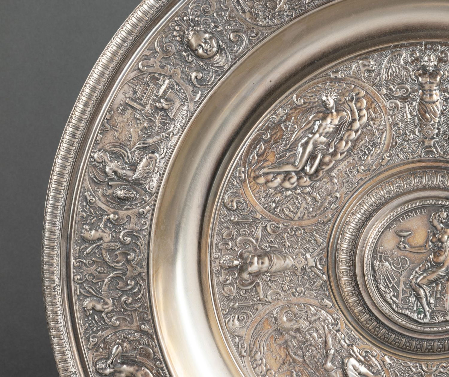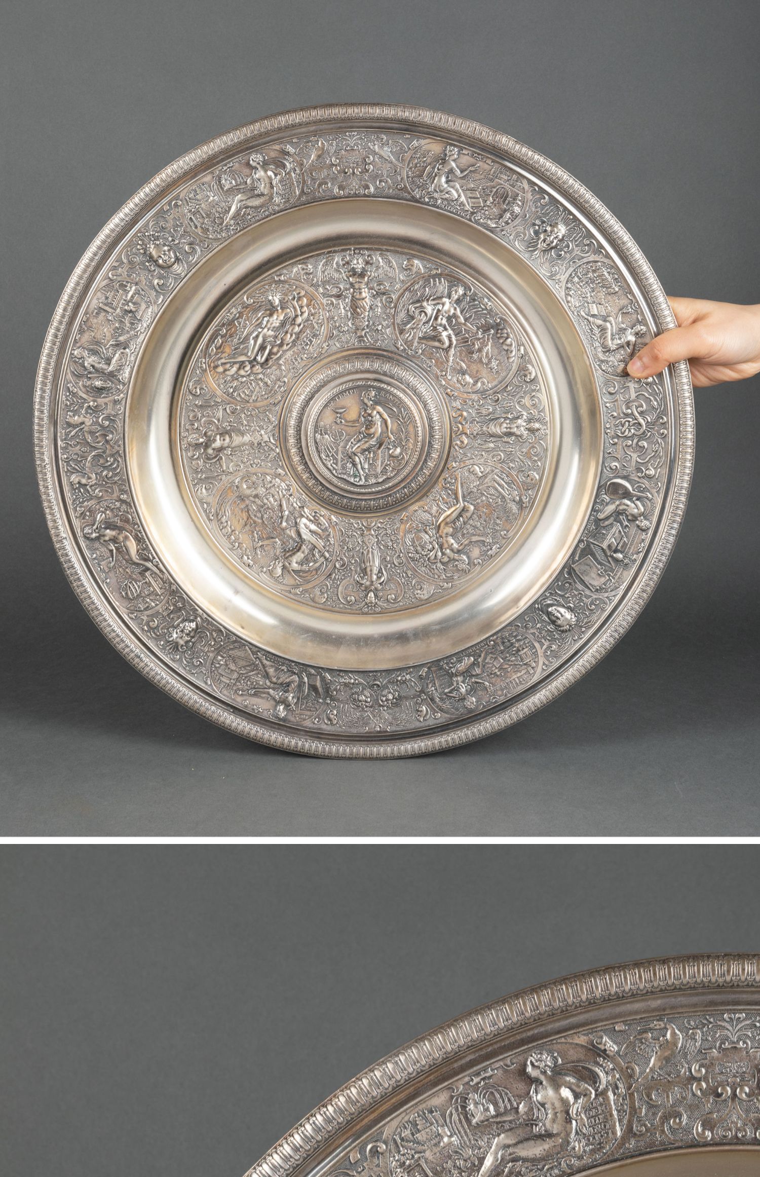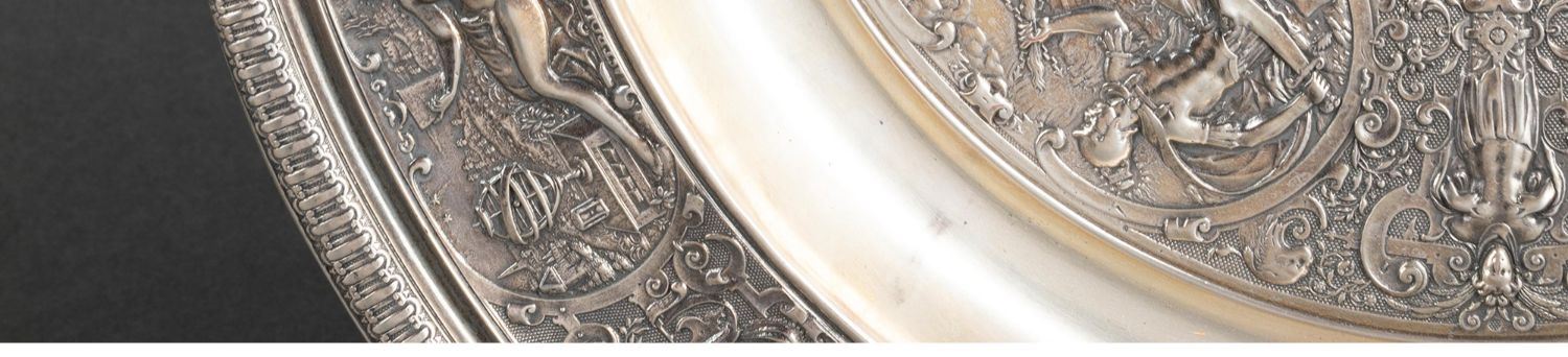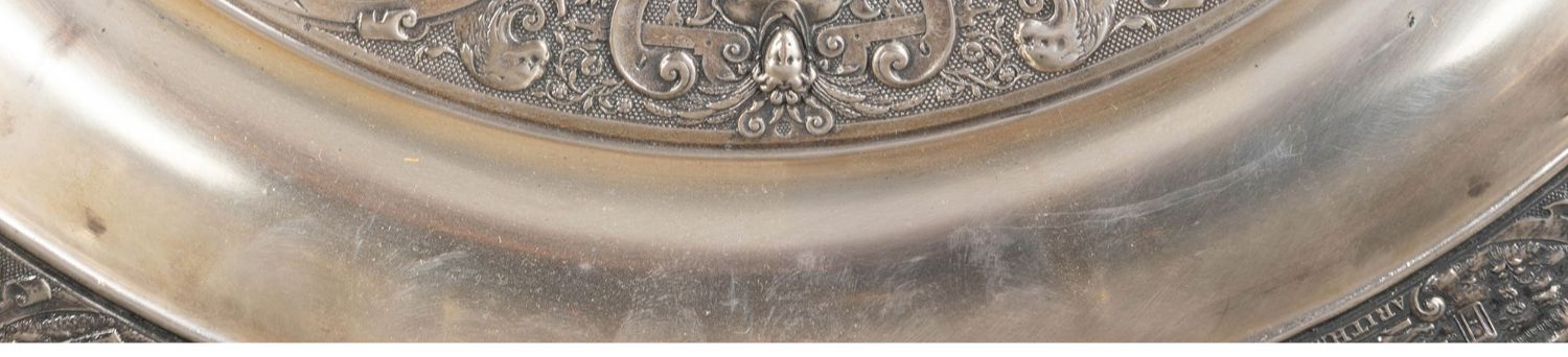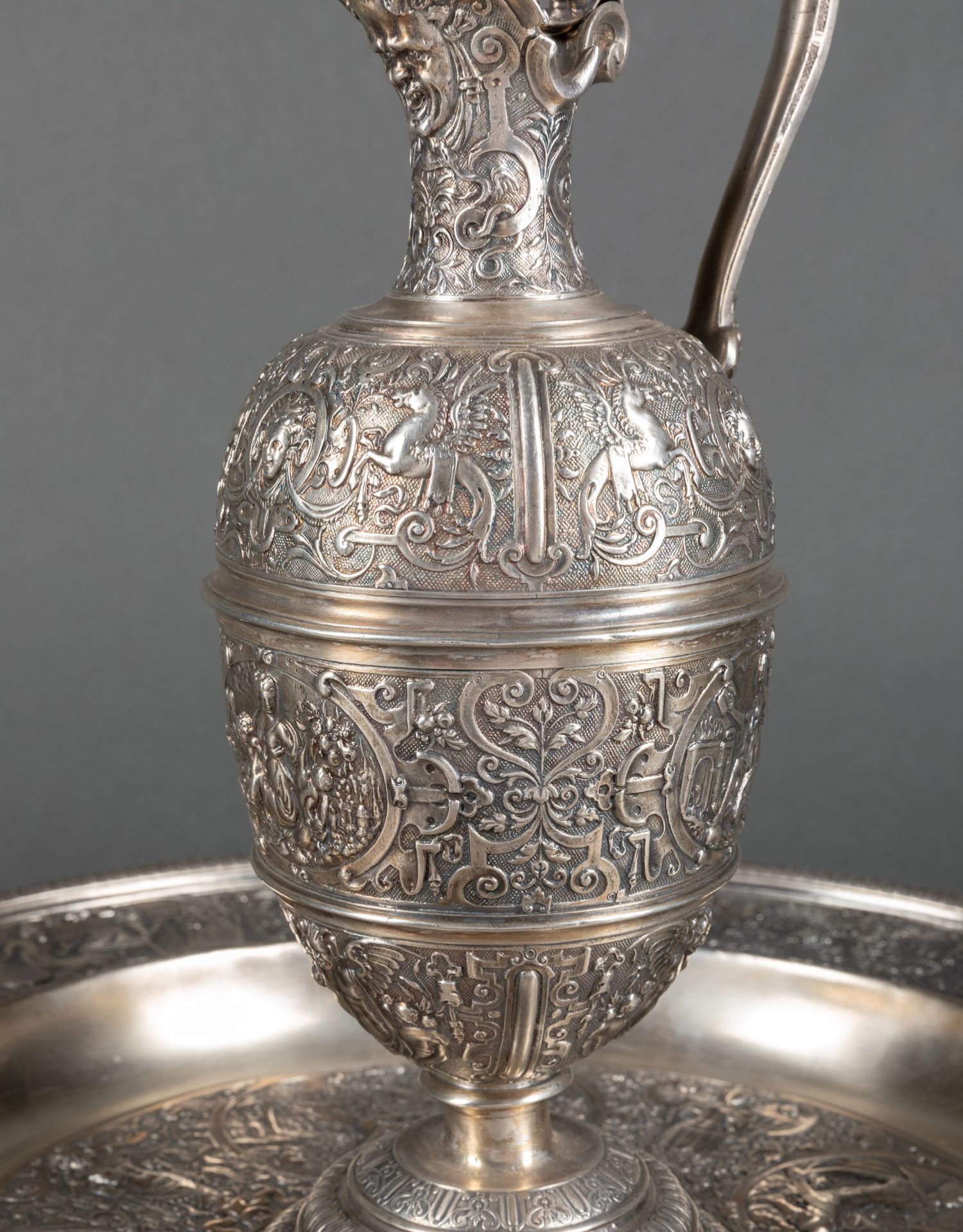独角鹿西洋古董银器法国浮雕信望爱主题镀银水壶玫瑰露水盘
