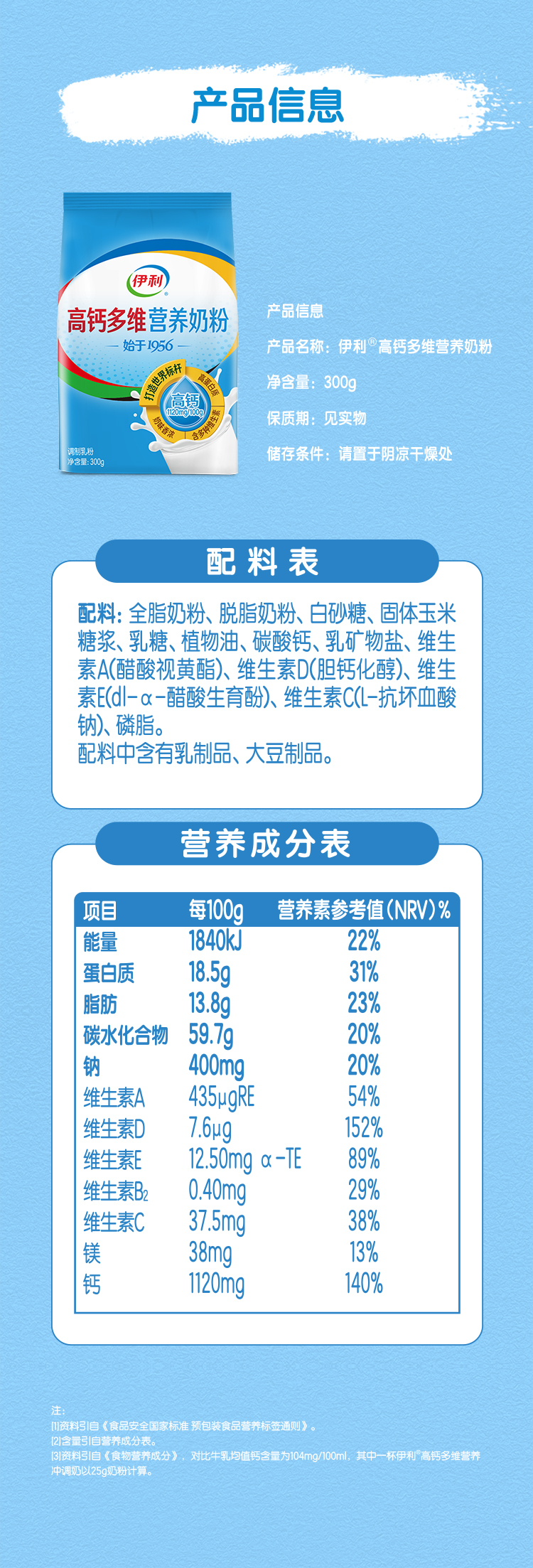 伊利高钙多维营养奶粉充氮装1*12*300G